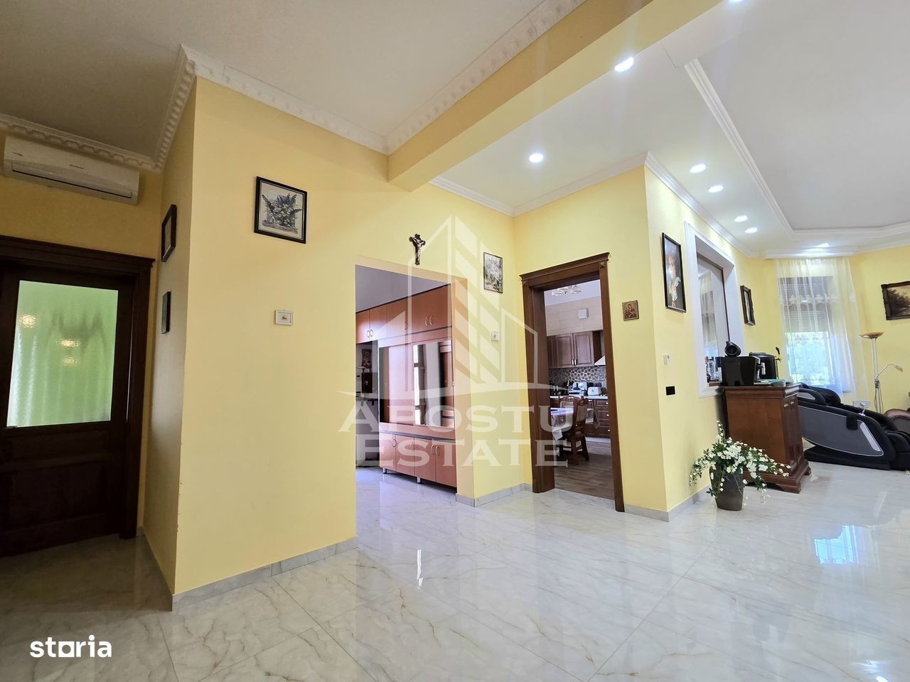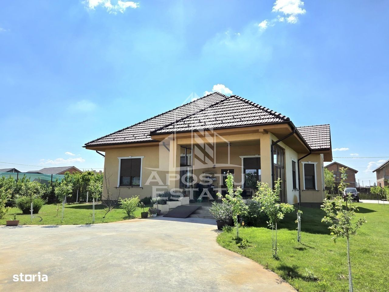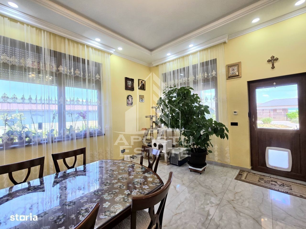 Apostu Estate are placerea de a va prezenta, in exclusivitate, cu comsion 0% fata de cumparator, o proprietate deosebita in localitatea Sag - o casa pasiva, construita cu atentie la cele mai inalte standarde de eficienta energetica si confort. La doar 10 minute de Shopping City Timisoara. Proprietatea a fost construita in anul 2019 si se remarca prin designul modern, spatiile generoase si atentia la detalii, fiind alegerea ideala pentru o familie care isi doreste confort si intimitate intr-o zona linistita, aproape de oras. Ce este o casa pasiva? O casa pasiva este o locuinta inteligent proiectata pentru a consuma o cantitate minima de energie pentru incalzire si racire. Datorita materialelor de calitate superioara, izolarii performante si sistemelor moderne de control al temperaturii, aceasta casa ofera un climat interior constant, confortabil, cu costuri extrem de reduse de intretinere; aceasta casa dispune de panouri fotovoltaice de o capacitate mare, 13.2 kw. Caracteristici generale ale proprietatii: Teren generos de 1388 mp Front stradal dublu, cu acces atat din fata casei, cat si din spatele casei 25 ml front 245 mpu, 58 mp terase Structura din beton cu cofrag LEGO, oferind o rezistenta excelenta (grosimea peretelui de 25cm construit conform tehnologiei LEGO constructii după caracteristicile sale depăşeşte în mod considerabil constructia din caramida sau panouri, iar caracteristicile de izolare ale acesteia sunt mult mai performante decat cele ale peretelui din caramida cu asemenea grosime) Izolatie interioara si exterioara, eficienta termica de top Geamuri tripan Rulouri Usi interioare din lemn masiv cu toc dublu Toata partea de tamplarie a fost realizata la comanda Inaltimea camerelor: 3,5 m, spatiu amplu si luminos Incalzire in pardoseala, pompa de caldura Centrala pe gaz Sistem fotovoltaic propriu de 13.2 kW Statie de multi-tratare a apei - calitate superioara a apei in toata casa 3 sisteme de racire: prin pardoseala, prin sistem cu unitate exterioara (racire prin tavan) si AC Sauna mobila cu infrarosu Termostat ambiental in fiecare camera pentru control individual al temperaturii Mobila din lemn, Mobexpert Curte frumos amenajata, cu spatii verzi si bine ingrijite Acces auto in curte, pavat, si posibilitate de a parca atat in curte, cat si in fata si spatele casei Acces pietonal pavat si suprafete generoase betonate, pentru confort sporit si o usoara intretinere Compartimentare inteligenta: Terasa acces: 15 mp Living spatios: 75 mp Bucatarie utilata complet si mobilata la comanda: 16 mp Holuri generoase: 43 mp Dormitor matrimonial: 25 mp Baie cu vana: 9 mp Dormitor secundar: 20 mp Camara: 11 mp Camera tehnica: 12 mp Baie cu vana si cabina: 10 mp Camera amenajata tip birou: 14 mp Camera tehnica: 10 mp Terasa exterioara acoperita: 41 mp Pod placat cu lemn, cu spatii de depozitare/amenajare impresionante Va asteptam cu drag la o vizionare! Se ofera consultanta financiara si suport complet in procesul de achizitie.