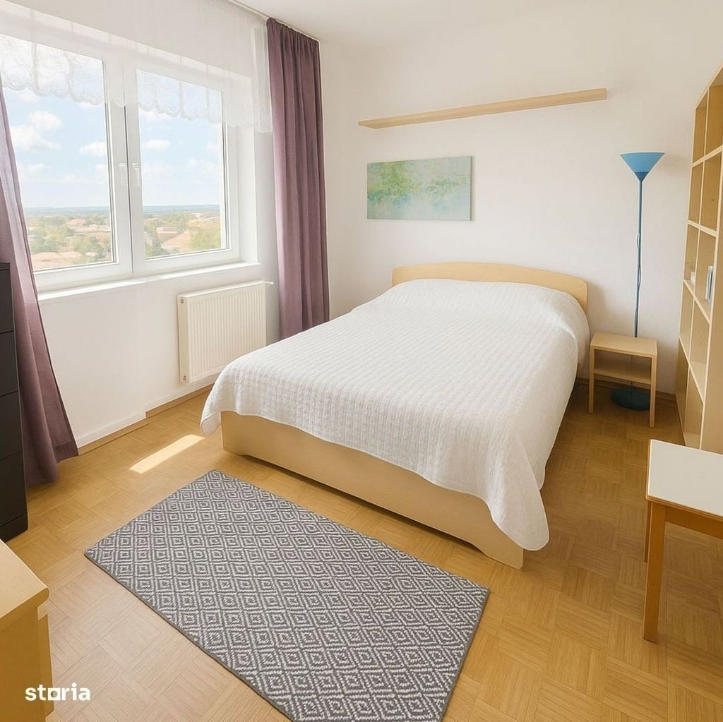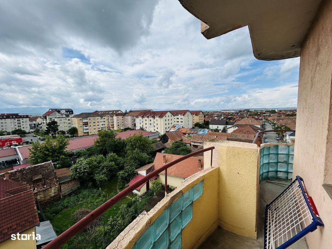 3 camere, luminos, spatios, calduros si foarte bine compartimentat. Clasa energetica A. Doua bai. Un balcon propriu cu panorama superba catre munti si acces la balcon comun (3 apartamente) pentru uscarea hainelor. Dotat cu tocarie si usi interioare lemn natur cires, gresie, parchet, geamuri termopan, centrala termica. Acces la boxa proprie subsol. Structura blocului rezistenta, ziduri groase, izolatie exterioara, lift. Acces facil la magazine alimentare si complex comercial bricolaj si fashion. 20 min mers pe jos pana in centrul vechi. Va rugam nu sunati dupa ora 21.