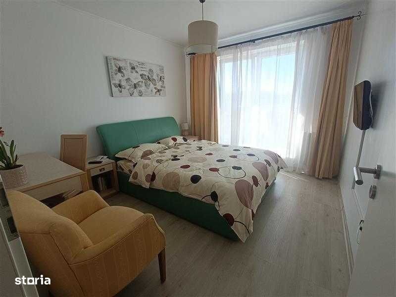 Inchiriez apartament decomandat, mobilat si utilat, de 3 camere in Avantgarden 2, zona Bartomomeu. Apartamentul este situat la etajul 6 al unui bloc cu 6 niveluri, beneficiaza de un loc de parcare si boxa si este format dintr-o camera de zi + bucatarie (openspace cu o canapea convertibila de 140cm), doua camere (un pat de 160 cm si o canapea convertibila de 140cm), baie, hol, dressing si balcon, suprafata totala de 66 mp si suprafata utila de 61 mp. Dotarile apartamentului sunt : -aer conditionat -masina de spalat automata marca LG -cuptor si plita pe gaz -hota electrica -frigider -centrala termica proprie -geamuri termopane -interfon Apartamentul este inchiriat mobilat, cu contract, chiria in avans pe prima luna din contract si contravaloarea unei chirii lunare drept garantie. Nu accept animale de companie in spatiul interior inchiriat iar fumatul este acceptat doar pe terasa. Apartamentul este disponibil spre inchiriere incepand cu 18 mai 2025. Nu doresc colaborare intermediara cu agentie immobiliara. Rog seriozitate. Multumesc.