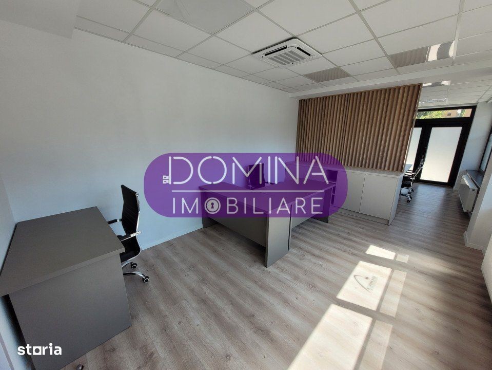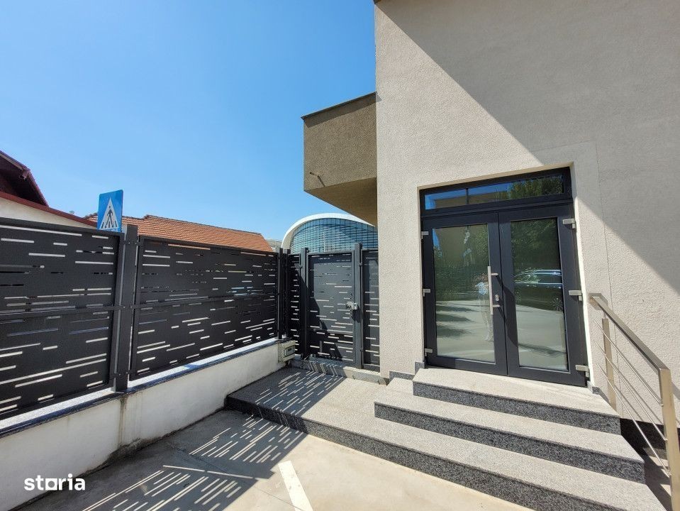 Spațiu comercial*parter*100 mp*zona Stadion-Sala Sporturilor* Domina Imobiliare vă propune spre închiriere spațiu comercial *central* situat în Târgu Jiu, strada Vasile Alecsandri - zona Stadion/Sala Sporturilor. Poziționat la parterul unui bloc nou cu regim de înălțime P+2, spațiul are o suprafața totală 100 mp, cu vitrină de 8 m.l., fiind compus din: 3 birouri, hol și 2 grupuri sanitare. Printre dotări menționăm: gresie, faianță, parchet, centrală termică, aer condiţionat, tâmplărie pvc cu geam tripan, tavan casetat, beneficiază de dublu acces securizat, atât din strada principală, cât şi pentru aprovizionare, precum şi de locuri de parcare. Spațiul reprezintă o oportunitate, fiind pretabil pentru o gamă variată de activități atât comerciale, cât și de birou, iar acesta oferă beneficiul poziționării într-o zonă circulată, în apropiere de Primăria Municipiului Târgu Jiu, Stadionul Municipal, Sala Sporturilor, Parcul Central "Constantin Brâncuși", restaurante și alte puncte de interes public. Vrei să vezi mai multe oferte similare? Ne poți contacta la numărul de telefon