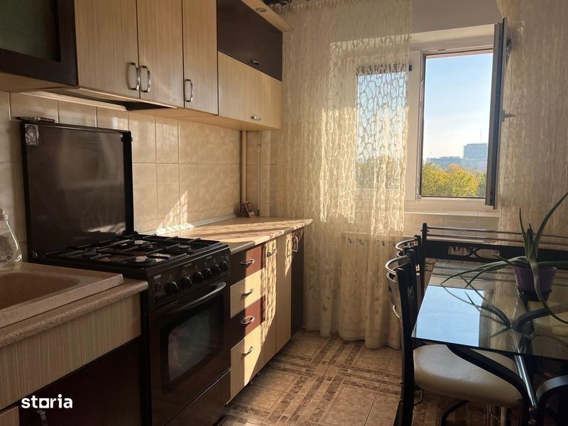 Apartament 2 camere, foarte spatios si luminos, situat chiar vis-a-vis de intrarea in Parcul Crangasi, intr-o zona verde, cu vedere la parc, Lacul Morii si la zona de promenada. Ideal pentru iubitorii de natura si sport in aer liber. Complet decomandat, camere spatioase, bucatarie open-space, 2 terase generoase, luminat intreaga zi, orientat spre sud, apartamentul este gata pentru a fi locuit, fiind imbunatatit cu toate cele necesare, de la mobilier clasic din lemn masiv la canapeau dubla extensibila pana la electrocasnice: frigider, 2 aparate AC, masina de spalat rufe etc. Etajul 5 din 9. An constructie 1987. Suprafata utila 58 mp. Bloc reabilitat termic. Fara probleme de alimentare cu apa, electricitate sau agent termic. Orientat spre sud, apartamentul este foarte economic pe timp de iarna. Situat la 3 minute de metrou, piata Crangasi, tramvaiul 41, autobuze. Apartamentul este la prima inchiriere si are un loc de parcare rezervat. Proprietar direct.