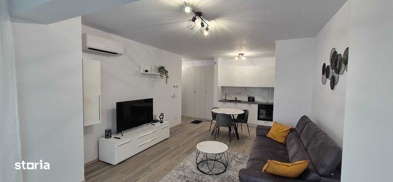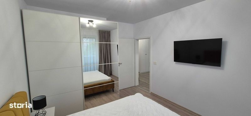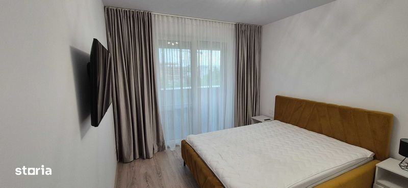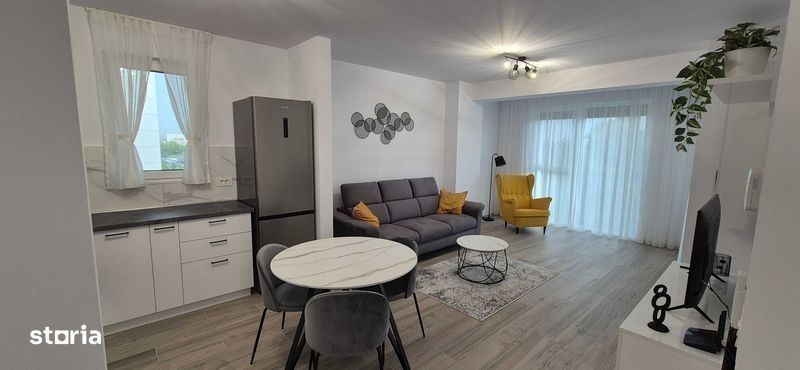 De inchiriat apartament in bloc nou (finalizat 2024) cu 2 camere, decomandat, situat la etajul 3 intr-un imobil P+11, cu suprafata utila de 52 mp + 1 balcon de 7 mp + parcare subterana. Apartamentul are vedere spre rasarit, structurat astfel: - living room open space cu iesire spre balcon - bucatarie cu loc de luat masa - dormitor cu iesire spre balcon - baie cu dus walk-in - balcon Apartamentul este amenajat cu atentie la detalii, primitor, aerisit, cu un aspect modern si placut. Blocul este dotat cu panouri solare, pompa de caldura si centrala termica de bloc. Incalzirea este prin pardoseala, iar pentru perioadele calduroase dispune de sistem de climatizare Fujitsu cu posibilitate de comanda si de la distanta. Accessul in imobil se face cu cartela, 2 lifturi, iar la locul de parcare subteran accesul se face cu bariera cu telecomanda. Dotari apartament: - video-interfon - termostat de ambient - senzor de gaz - sistem de alarma cu senzori antiefractie, de incendiu, de inundatie - usi interioare Porta Doors - usa metalica la intrare. Bucataria este facuta la comanda, cu elemente de calitate (MDF, soft-close), electrocasnice Electrolux (plita inductie, hota, cuptor, masina de spalat vase), Gorenje (figider), aparat de cafea Nespresso, prajitor de paine Philips. Apartamentul dispune si de masina de spalat vase si uscator de rufe Electrolux, fier de calcat, aspirator vertical Gorenje. In living a fost montat si rulou electric (comandat cu telecomanda). Sistemul de alarma antiefractie dispune de senzori anti-inundatie, senzor de incendiu, senzor de temperatura / umiditate, de miscare si de intrare in imobil. Comanda se poate face cu telecomanda si de la distanta. Dispune de 2 TV-uri Samsung smart (1 in living si 1 in dormitor), router Asus deja instalat. Se pun la dispozitie inclusiv perne, patura noi, lenjerie de pat, prosoape. In bucatarie exista vesele noua, tacamuri, cratite, accesorii de bucatarie. Pe balcon exista o masuna si 2 scaune de ratan. La baie, se dispune de dus walk-in, sistem de dus si baterie Grohe, spatii de depozitare, cos de rufe. Iluminatul este cu LED in toata casa. Inchirierea se face pe termen lung (minim 12 luni), cu contract. Nu se accepta animale de companie, nu se accepta fumatori, nu se accepta doamne / domnisoare de companie, studenti, fara subinchiriere. Pretul inchirierii este 550 Eur / luna + 1000 Euro garantie.