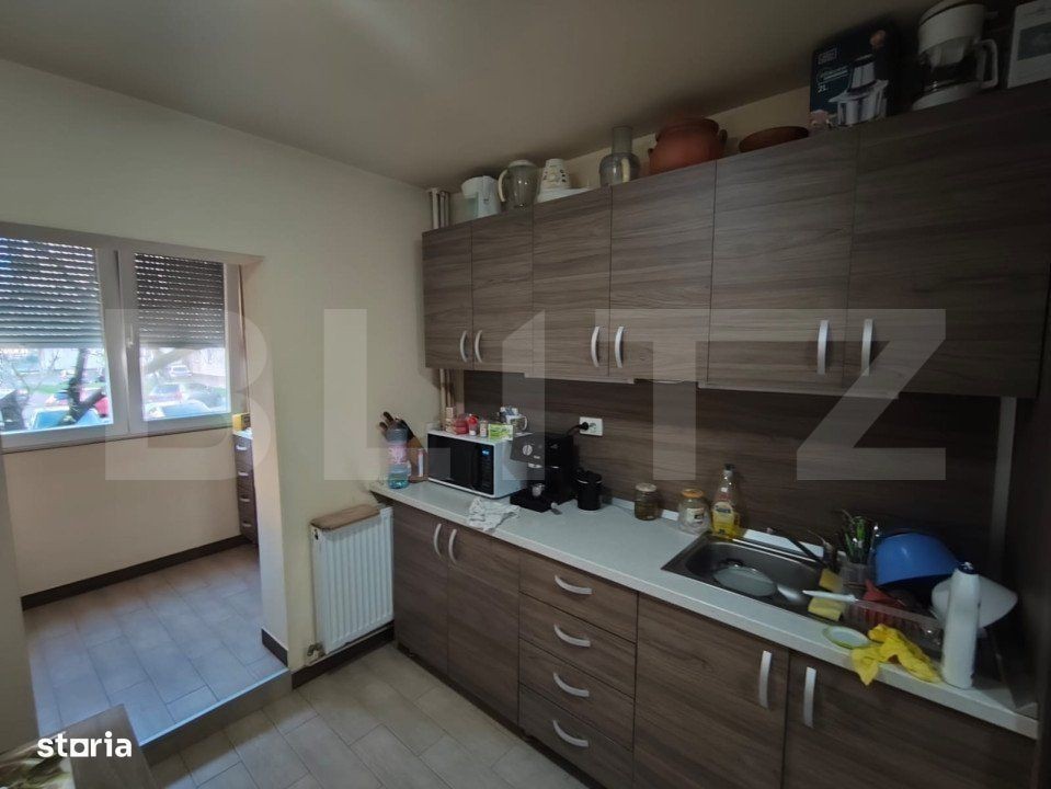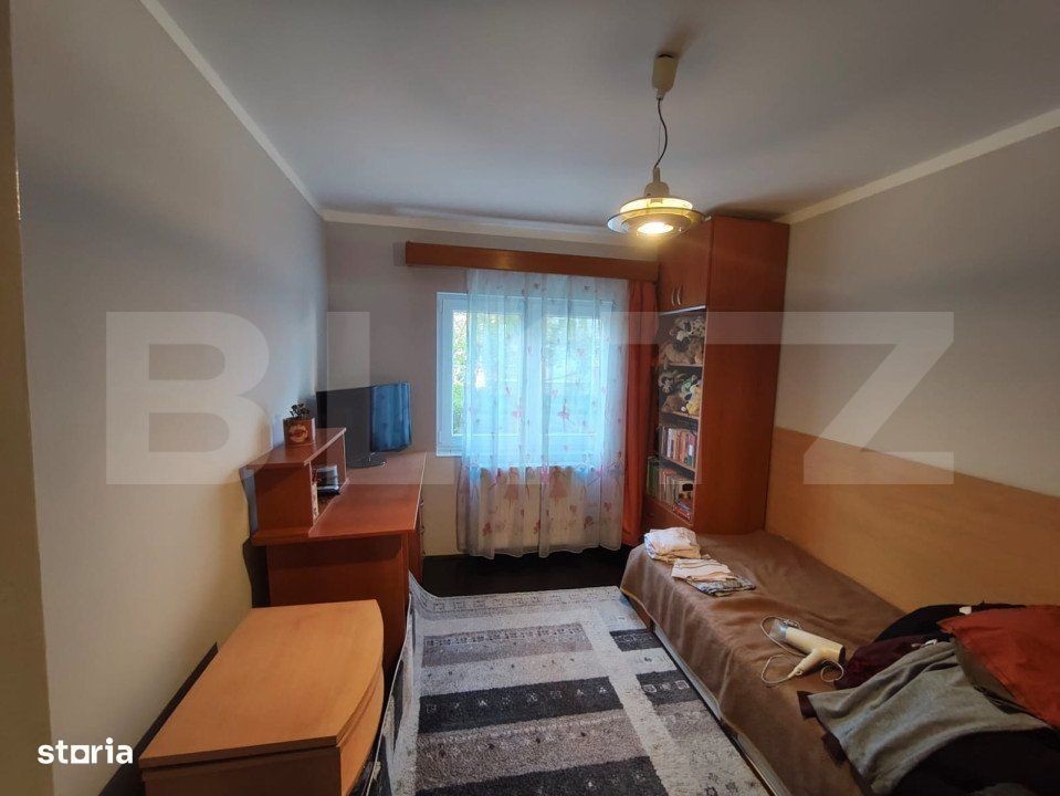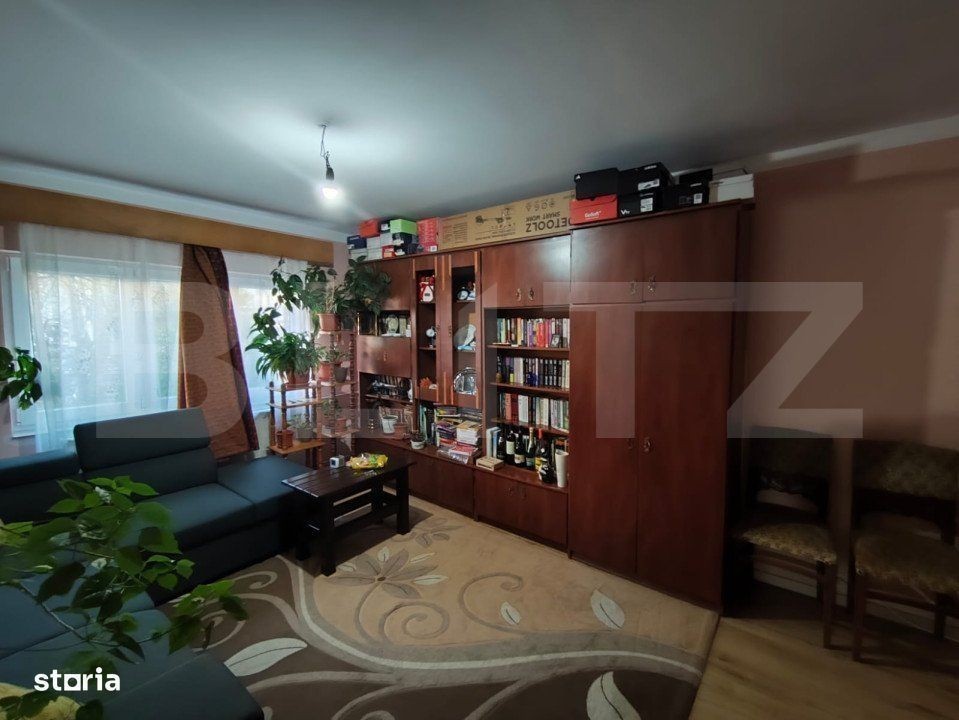 Blitz vă oferă spre vânzare acest apartament tip PB, cu 4 camere. Apartamentul e poziționat într-o zonă foarte facilă, aproape de școli, grădinițe, mijloc de transport în comun, prima Shops, etc. Apartamentul este situat la parterul unui bloc de 4 etaje, din cărămidă, cu acoperiș si are dubla orientare. Se vinde mobilat și utilat sau nemobilat, instalatiile electrice si sanitare au fost schimbate. Compartimentarea e următoarea: 3 dormitoare, living generos, 2 băi, 1 balcon la bucatarie inchis cu geam termopan, debara, hol. Va asteptam la vizionare.