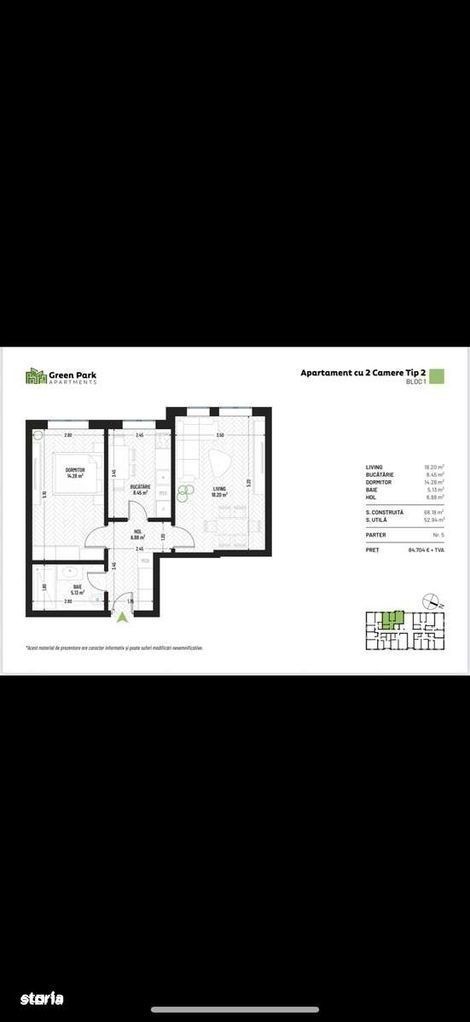 PENTRU ORICE CONTRACT DE ACHIZITIE SEMNAT PANA LA DATA DE 31.12.2025 SE OFERA CADOU BUCATARIA MOBILATA PRETUL PROMOVAT INCLUDE TVA SI ESTE VALABIL PENTRU APARTAMENT TIP GARSONIERA CA PARTE A PROMOTIEI DE PRET VALABILA PANA LA 31.12.2025 GREEN PARK APARTMENTS A FOST GANDIT CA UN SPATIU COMPLET LOCATIV,CARE IMBINA VIATA URBANA CU NEVOIA DE RELAXARE DATA DE UN PARC CENTRAL CU ALEI SI ZONA DE RELAXARE,PISTA DE ALERGARE,SPATII COMERCIALE,PISCINA DECORATIVA.LOC DE JOACA SI TEREN DE SPORT MULTIFUNCTIONAL.