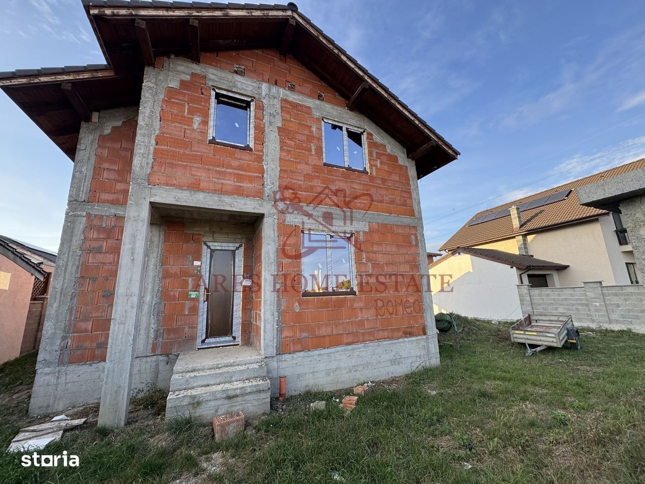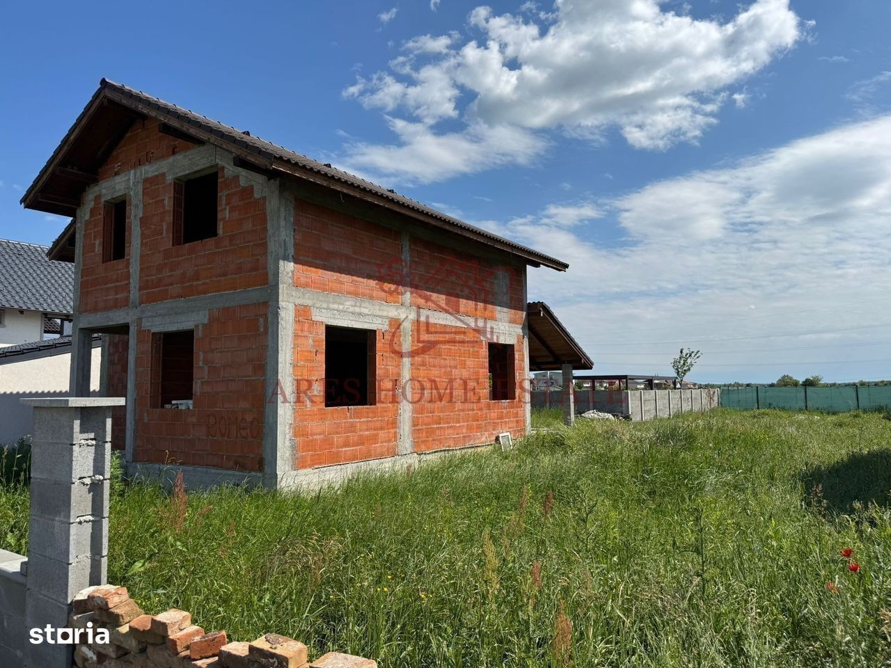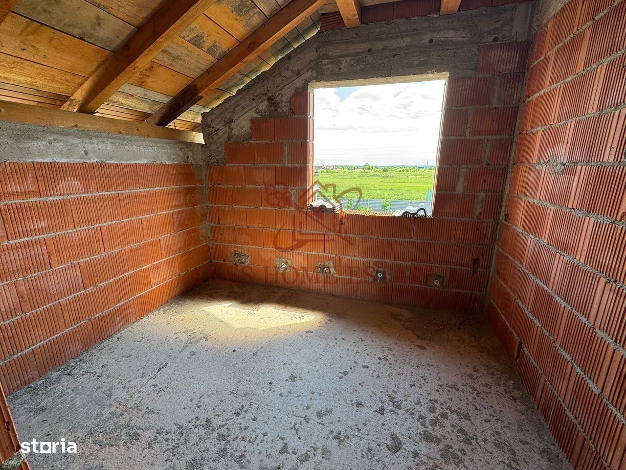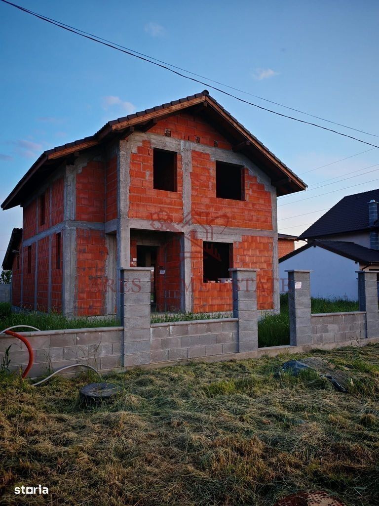 Casa este de tip P+M, individuala. Casa are 140 mp utili + terasa de 18 mp si teren de 500 mp. Front stradal de 25m. Exista si proiect pentru o anexa gandit fiind pentru un laborator de cofetarie. Casa are urmatoarea compartimentare: Parter: hol, living open space cu bucatarie, se poate inchide sau compartimenta, baie cu dus si terasa unde era gandita o a doua baie. Mansarda : 3 dormitoare dintre,baie cu cada si hol. Utilitati: gaz, curent, apa, canal Imprejmuita cu gard beton. Ca si locatie se afla in Giroc pe strada Bicaz. 5 minute de primarie, statie autobus, Profi si altele. Comision 0, proprietar- persoana fizica. Pe strada principala este pietris, dar se asfalteaza cat de curand.