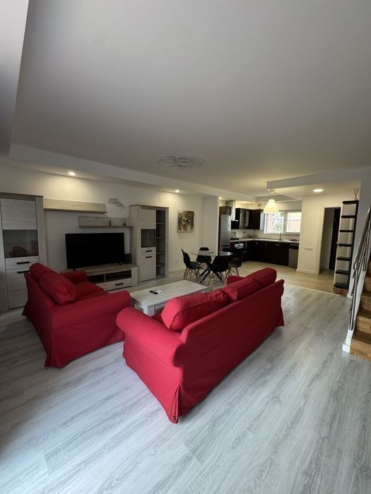 Va oferim spre închiriere o vila Spațioasă de 3 camere situată in Complexul Cosmopolis, zona de Nord a Bucureștiului. Vila se afla poziționată pe colțul unui careu in partea de Mall a complexului, structurata P+1+M, suprafața utila 85 mp, suprafața curte proprie 65 mp. La parter avem un living spațios Bucatarie open space complet mobilată și utilată, hol la intrare, grup sanitar. La etaj dispune de 2 dormitoare, dormitor cu baie matrimonial cu baie proprie, baie pe hol care deservește cel de al doilea dormitor, terasa de unde se poate ieși din dormitorul matrimonial cu vedere la piscina din careul unde este amplasată vila. Dormitorul care este gol și are doar dressing se poate mobila în funcție de ce se dorește. Curtea este amenajată cu gazon și delimitata cu gard si are iesire la piscina din careu. Mansarda se poate folosi ca spațiu de depozitare. Se închiriază complet mobilată și utilată modern În fața casei deține și 2 locuri de parcare Facilității Complex: paza Bgs, Mall unde aveți restaurante, cafenele, farmacie, croitorie, Carrefour de aprovizionare, Lidel, magazin Non-stop, scoala, Grădinițe, spații de joaca pentru copii, acces la cele 15 piscine ale complexului, sala Fitness, coafor, mijloc de transport in comun care circula doar cei care locuiesc in complex. MERITA VĂZUTĂ!