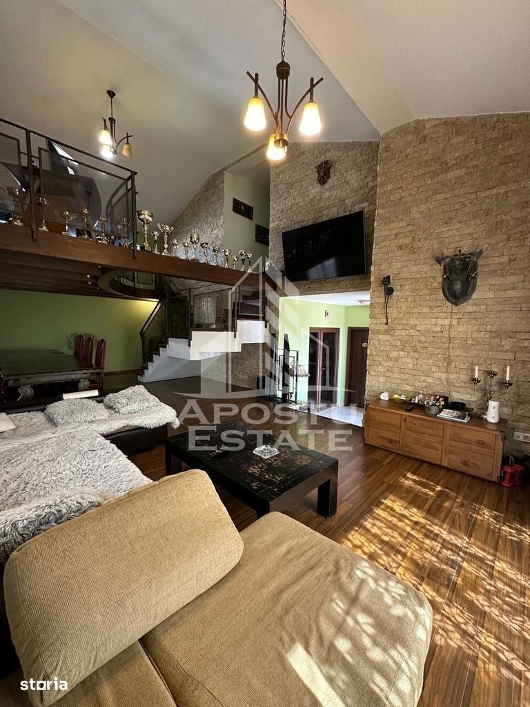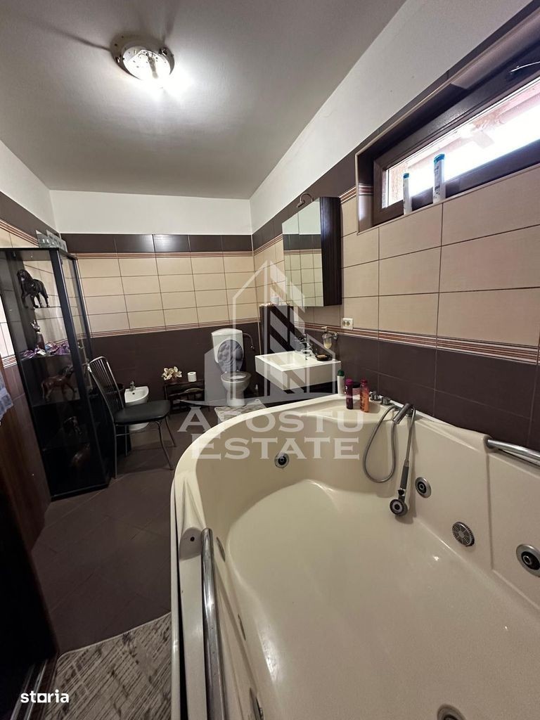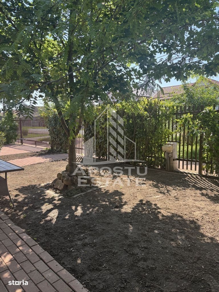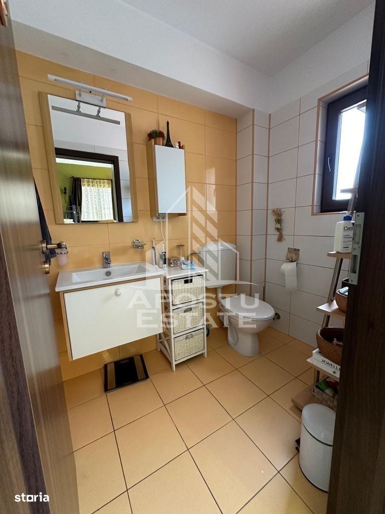 Apostu Estate va ofera spre vanzare o casa unifamiliara situata chiar in centrul comunei Giroc,avand acees foarte bun atat catre mijloacele de transport cat si catre magazine etc. Constrcutie din caramida ridicata pe regim de inlatime P+M,avand toate utilitatiile necesare (apa,curent,gaz,canalizare).Drum asfaltat,pomi ornamentali,posibilitate de parcare atat in fata portii,in curte dart si in garaj. Casa se vinde mobilata si utilata asa cum se observa in forografii. Incalzirea se realizeaza prin intermediul centralei pe gaz prin pardoseala.Casa este prevazuta cu sistem de supraveghere video si dispune si de clima. Izolatie exterioara de 15 cm cu EPS 80,curtea este pavata. Tamplarie Pvc din Geam Termopan cu folie pt razele solare. Compartimentare: Parter; -hol de acces -bucatarie inchisa -debara -baie -living open space cu dinning -intrare directa in casa din garaj. Garajul dispune si de o camera tehnica si de inca o incapere pentru depozitare. Etaj: -hol de acces -birou -3 camere din care acum una din ele este prevazuta ca dressing si celelalte sunt dormitoare -baie mare -balcon Se accepta orice varianta de credit bancar,va asteptam la o vizionare,mai multe detalii la telefon!