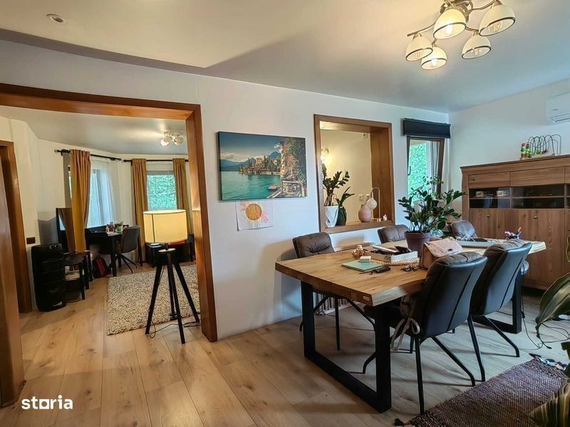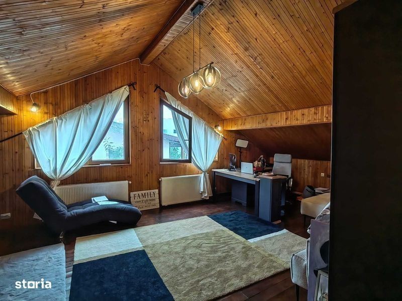 O casa deosebita langa Padurea Snagov, construita in stilul arhitectural de tip Victorian, pe un soclu de 1,8 m, o constructie deosebita de 10 m inaltime, care impresioneaza din toate imprejurimile, care si-a demonstrat soliditatea in timp, cu o super pozitie, avand acces la STB, la schoolbus, la padure, cu intrare din 2 strazi, o proprietate care ofera intimitate, vederi deschise, spatii de plimbare si vecni de calitate. Date tehnice: - P+1+pod ide 2,8 m inaltime si izolat. Casa necesita comestizari pe exterior, putandu-va pune in opera gusturile Dvs iar tereaele trebuie reamenajate - 304 mp supr. desfasurata cf. CF (supr. include si terasele) iar in fapt suprafata este de 400 mp (prin incuderea 1) a pivnitei de la subsol, 2) a garajului izolat ce are inaltimea de 5 m permitand impartirea spatiului in 2 nivele si 3) a podului izolat mansardabil avand inaltimea de 3 m) - 6 camere plus bucatarie, 3 bai, 2 terase, garaj, pivnita cu accss din bucatarie, pod izolat mansardabil si se vinde asa cum este, cu mobila noua de 1 an de zile, marca XXLutz si Ikea. - teren intravilan construibil generos de 2000 mp, cu toate utilitatile incluzand astfel curent electric, gaze, apa si canalizare centralizate (desi proprietatea este dotata si cu put forat/ fosa septica). - este pe strucutra de lemn tip canadian din dulapi de 20 cm cu dubla izolatie (in interior cu vata minerala, iar in exterior cu polistiren) combinat cu grinzi si stalpi masivi. pe o fundatie de beton armat cu soclu de pana la 1,9 m. inaltime Terenul asigura 2 deschideri respectiv la str. Ungureni si la str. Aviatiei, terenul permitand dezmembrarea acestuia in 3-4 loturi construibile care pot gazdui mai multe locuinte individuale dand un randament foarte ridicat proprietatii intr-o zona foarte cautata. Atractii in zona: - Complex Astoria, padure, lac ajungand pe jos - Restaurante - Lidl, Mega, Profi, Penny - complex educational cu socala pt clasele mici noua realizata din fonduri europene, cu terenuri largi de sport outdoor si indoor in constructie Pentru orice este nevoie va stau la dispozitie pe Whatsapp/ tel., Cu stima. Alexandru