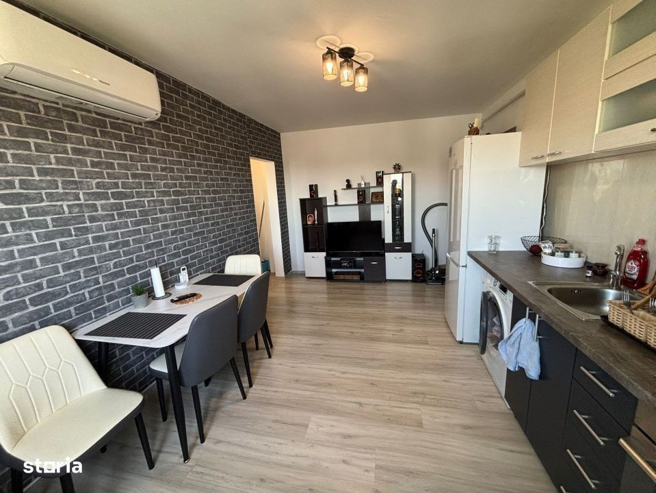 GDN Elite Imobiliare va propune spre vanzare un apartament de 2 camere, ce dispune de o compartimentare semidecomandata, situat la etajul 10 al unui bloc cu 10 etaje ce beneficiaza de etaj tehnic. Apartamentul este situat in cartierul Craiovita Noua zona Statia 30, in apropiere de scoala 33 cu o vedere pe Vest, blocul fiind construit in anul 1976 din placi de beton. Apartamentul dispune de o suprafata utila de 48,21mp si o suprafata utila totala de 50,98mp incluzand un balcon cu suprafata de 2,77mp. Imobilul este impartit astfel, hol generos la intrare din care ne facem accesul in living, iar din living ne facem trecerea catre dormitor si baie, care beneficiaza de aerisire cu geam. Apartamentul dispune de centrala termica montata, instalatia fiind realizata din cupru, si un aer conditionat nou de 18000BTU. Imobilul se vinde complet mobilat si utilat. Blocul beneficiaza de lift nou. Perfect pentru o familie, sau chiar un cuplu care cauta o zona apropiata de punctele de interes precum Promenada Mall, scoala 30, restaurantul Oltenia, banci, transport in comun, statie de taxi. Va asteptam cu drag la vizionare!