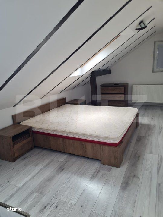 Blitz va ofera spre vânzare un apartament cochet și eficient compartimentat, cu 1 cameră decomandată, situat în zona Tudor Vladimirescu. Proprietatea dispune de o suprafață utilă totală de 84 mp, împărțită armonios între parter și mansardă, și include loc de parcare dedicat. Compartimentare inteligentă: Parter (42 mp): Dormitor generos Bucătărie open space Baie modernă Mansardă amenajată (42 mp): Dormitor suplimentar Baie cu dus Dressing spațios Dotări și beneficii: Centrală termică proprie și calorifere Geamuri termopan, ușă metalică Aer condiționat Mașină de spălat rufe, frigider Apartament luminos, poziționat ideal față de soare Posibilitate preluare chiriaș - ideal pentru investiție Localizare excelentă: Proprietatea se află în imediata vecinătate a facilităților urbane esențiale: Mijloace de transport în comun Unități de învățământ (școli, grădinițe, facultăți) Magazine, piață, farmacii, bănci și parc Recomandat pentru familii, tineri profesioniști sau investitori în căutare de randament sigur. Pentru mai multe detalii sau programarea unei vizionări, nu ezitați să ne contactați. Acest apartament îmbină confortul, funcționalitatea și poziționarea ideală într-unul dintre cele mai apreciate cartiere ale orașului.