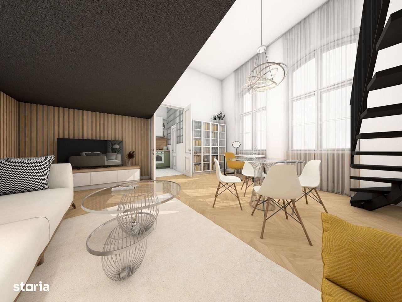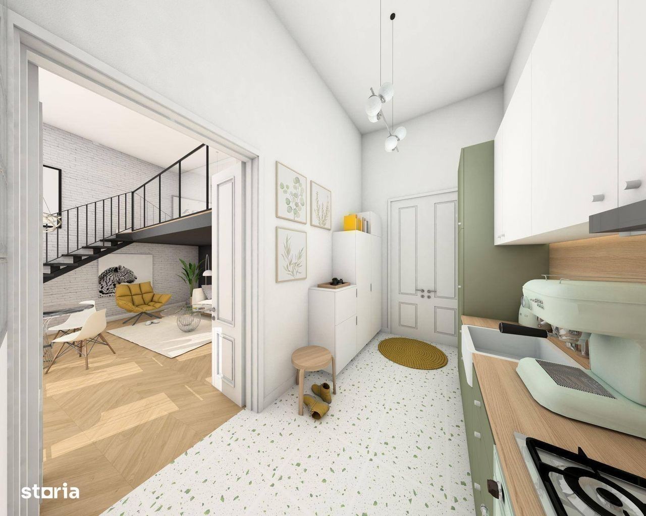 Vă oferim spre vânzare un apartament cu potențial ridicat datorită localizării și a posibilității de a obține 2 unități locative, una cu o suprafață utilă de 37.98 mp iar cealaltă de 39.71 mp, demersurile fiind făcute de către proprietari, inclusiv randări. A fost proiectat fiecare apartament cu mezanin, rezultând o suprafață mai mare atât pentru zona de living cât și pentru suprafața utilă a apartamentului. Astfel, fiecare apartament va avea peste 40 mp utili.