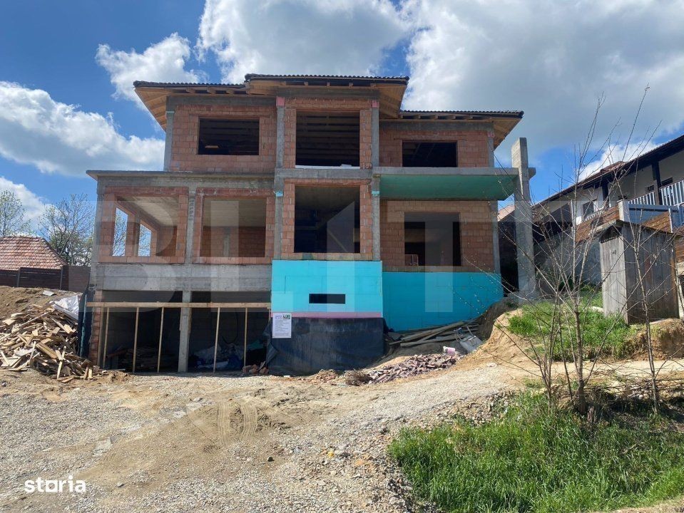 Blitz vă propune spre vânzare o proprietate de tip high-end, situată într-o zonă premium din Feleacu, cu o panoramă superbă spre oraș. Casa impresionează prin arhitectură modernă, finisaje de înaltă calitate și compartimentare eficientă, ideală pentru o familie care își dorește confort și intimitate. Detalii generale: Suprafață utilă: 320 mp Teren: 700 mp Construcție din cărămidă, cu izolație exterioară de 15 cm Acoperiș din țiglă ceramică Geamuri tripan de înaltă eficiență Iluminat ambiental prin tavan fals Curent trifazic Compartimentare: Subsol: 2 garaje spațioase cameră tehnică birou/dormitor baie Parter: living generos cu deschidere spre terasă bucătărie modernă sufragerie separată baie spații de depozitare acces direct către curte și terasă Etaj: 3 dormitoare, fiecare cu baie proprie dressing terasă și balcon cu vedere panoramică Această locuință oferă o combinație perfectă între eleganță, funcționalitate și poziționare excelentă. Priveliștea spre oraș, liniștea zonei și atenția acordată detaliilor de construcție o transformă într-o alegere ideală pentru cei care caută un stil de viață rafinat. Casa se predă la stadiul de semifinisat, cu posibilitatea de a fi finisată integral conform preferințelor viitorului proprietar. Pentru detalii suplimentare sau programarea unei vizionări, nu ezitați să ne contactați.