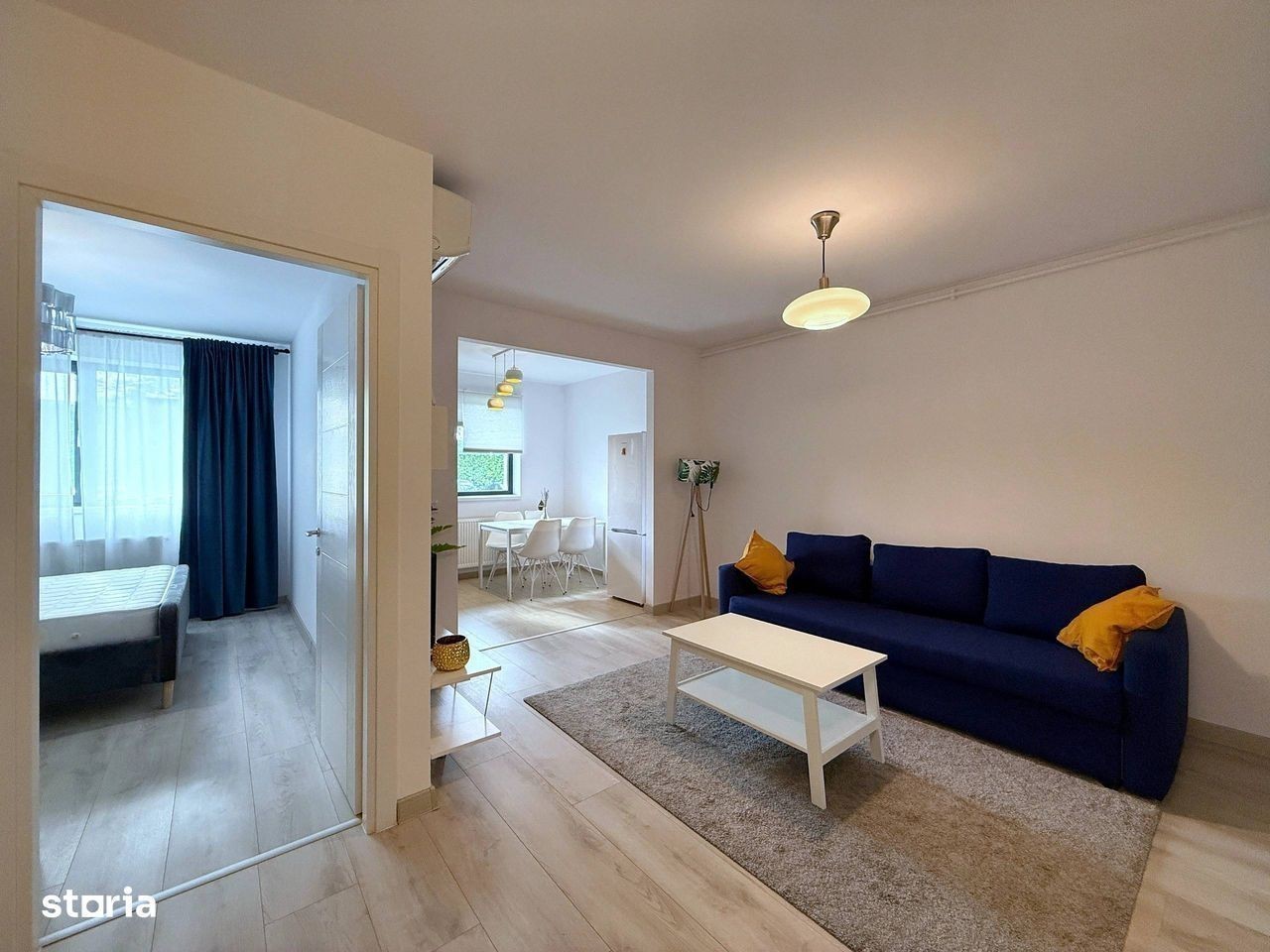 Comision 0% Apartament cu 2 camere in Hils Pallady la doar 1 minut de mers pe jos fata de statia de metrou Anghel Saligny. Pozitionare foarte buna, ferit de zgomotul traficului situat la parter cu potential mare pentru investitie/chirie termen lung sau scurt. Se inchiriaza rapid cu 550 Euro. Pretul apartamentului este de 122.000 euro cu parcare inclusa. Nu se percepe TVA fiind vandut de persoana fizica. • 45mp - mobilat si utilat • Complex rezidential securizat cu paza si bariere • Aer Conditionat • Centrala terminca proprie • Metrou Anghel Salingy la intrarea in complex • 5to go & Mega Image in complex • Parc pt copii • Ikea, Kaufland, Lidl la 5 minute, peste drum de complex. VAUNT ID: 102436