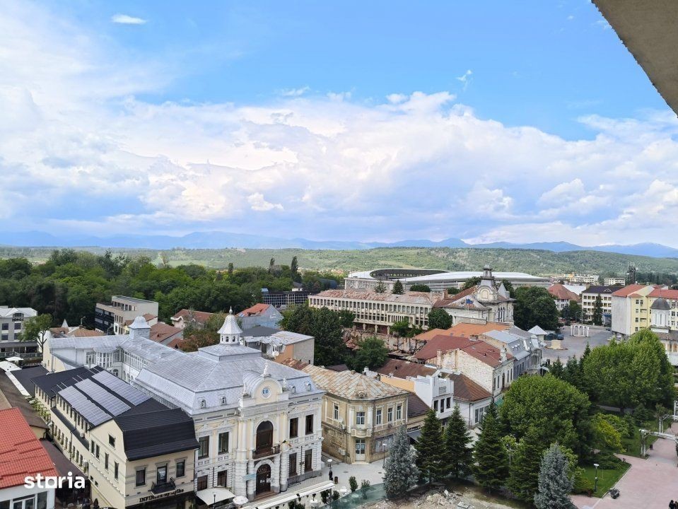 Pentru cei care își doresc un stil de viață activ, urban și conectat la tot ce contează în oraș, vă oferim un apartament situat chiar în inima Târgu Jiului, pe Axa Eroilor, cu o priveliște unică spre Coloana Infinitului, zona de spectacole (Groapa), Universitatea Constantin Brâncuși și Stadion Caracteristici principale: - Suprafață utilă: 86 m² - Camere: 3, complet decomandate - Etaj: 7 din 8 - 2 Balcoane mari (cca 7 m lungime fiecare), închise cu termopan, vedere panoramică - Bucătărie spațioasă, dressing, debara - Încălzire: centrală termică proprie - Complet mobilat și utilat - 2 locuri de parcare în parcarea rezidențială - Lift modern, cu sisteme de siguranță -Cheltuieli reduse de întreținere - Bloc construit în 1992, proiectat antiseismic (8 grade Richter), reabilitat termic/fonic în 2017 Localizare de excepție: * Vedere directă spre Coloana Infinitului și zona culturală de spectacole * La câțiva pași de: Primărie, Prefectură, Teatru, Parcul Central, Biblioteci, Universitate, Liceul Tudor Vladimirescu, Școala nr. 8, Banci, Spitalul Judetean de Urgență, Farmacii, Piața Centrală. * Zonă pietonală liniștită, dar centrală * Acces rapid la toate instituțiile importante și punctele de interes ale orașului Un apartament ideal pentru cei care apreciază confortul, poziția centrală și o panoramă spectaculoasă asupra simbolurilor orașului. Pentru detalii și programări vizionări: