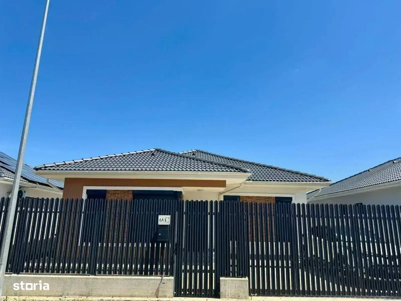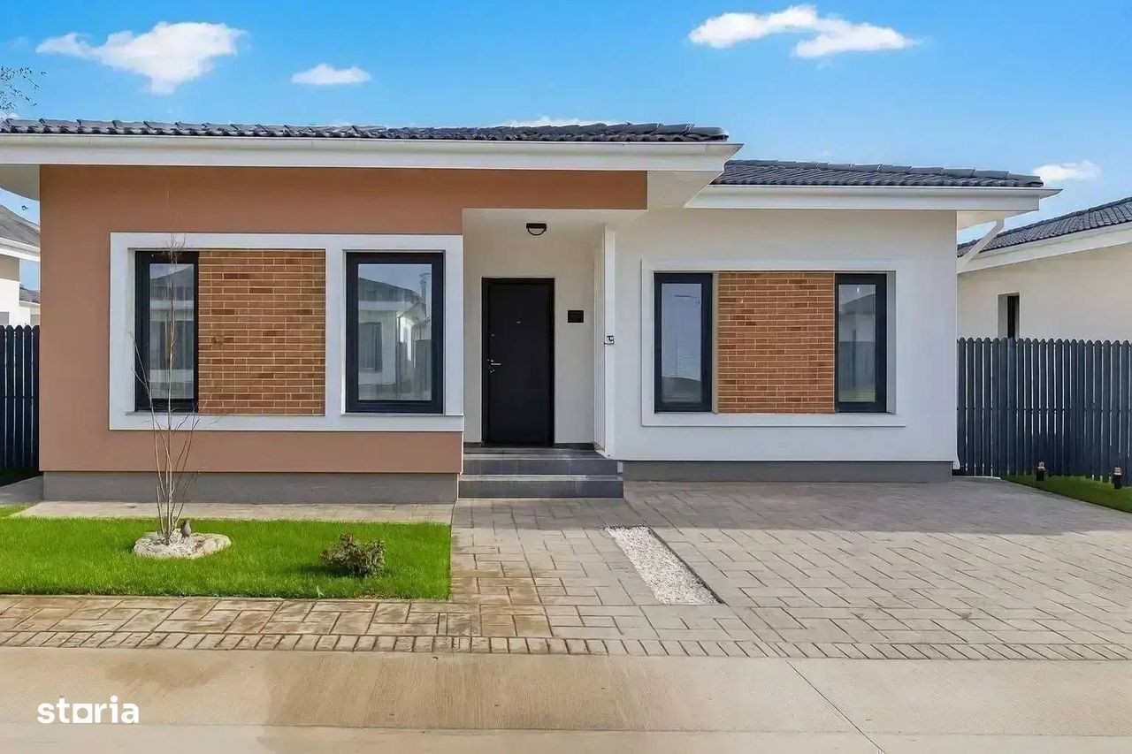 Direct dezvoltator, 0 comision! Va propunem spre vanzare o vila individuala pe parter situata intr-un ansamblu rezidential nou construit, alfaltat, racordat integral la toate utilitatile de la reteaua publica - canalizare, apa curenta, electricitate si gaz. Detalii proprietate: • Suprafață utilă: 105 mp • Suprafata construita 129 mp • Suprafata teren: 400 mp • Suprafata gradina compacta 270 mp • 2 locuri de parcare incluse în preț • Preț: 175.000 Euro + TVA Detalii suprafete : • Living: 42 mp • Dormitor 1 : 15.11 mp • Dormitor 2 : 14.17 mp • Dormitor 3 : 14.07 mp • Hol : 6 mp • Grup sanitar : 7 mp • Grup sanitar : 6 mp • Spatiu depozitare/camara : 3 mp Caracteristici constructie - informatii preluate din memoriu tehnic al imobilului: Structură solidă din beton armat și zidărie portantă din cărămidă Porotherm 30 cm Pereți interiori din cărămidă Porotherm de 11,5 cm Izolație termică de înaltă eficiență, cu polistiren de 15 cm Izolatie spuma poliuretanica-eficienta termica ridicata, izolare fonica, rezistenta la umiditate si mucegai, etansare completa-durata de peste 25 ani-greutate redusa a acoperisului. Încălzire în pardoseală Caleffi pentru confort termic optim Pompe de căldură de ultimă generație- Romstal Tâmplărie Salamander cu geam tripan, pentru eficiență energetică și izolare fonică excelentă - editia Blue Evolution Parchet laminat 10 mm, nuanta stejar auriu Placi ceramice Regatta 60/120 cm - nuante calde, neutre, textura mata Grupurile sanitare sunt complet echipate de la Roca - un grup sanitar este dotat cu cabina de dus, iar celalalt cu cada Usi intrare metalica, interioare celulare - marca Porta Doors Toate stadiile constructiei sunt atent documentate, verificate si executate de catre echipele de constructori calificati. Punem la dispozitia clientului cartea tehnica a vilelor. Facilități ale ansamblului: • Acces securizat cu barieră automată • Stradă privată, cu iluminat stradal modern • Infrastructură completă: apă, canalizare, electricitate si gaz (toate provin de la reteaua PUBLICA) • Acces facil către școli, grădinițe, supermarketuri și zone comerciale Statie transport public la intrare in ansamblu Vilele se predau complet finisate fara mobilier, aceste poze au titlu de prezentare. Direct Dezvoltator, 0 comision VAUNT ID: 102809