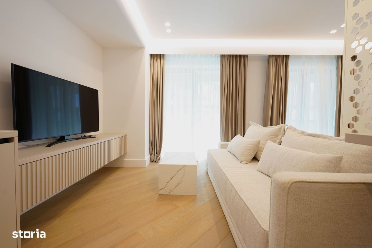 Totul nou, la prima inchiriere. Studio dublu, mobilat si utilat premium, in complexul Cortina 126 de pe Str. Erou Iancu Nicolae. Un loc de parcare subteran inclus in pret.