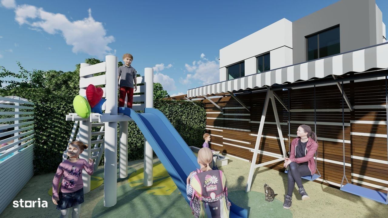 Residence 6ONE este alegerea perfectă pentru familiile care caută un echilibru între confort urban și liniștea unui cămin retras. Situat într-o zonă ferită de agitația orașului, dar cu acces rapid către centre educaționale și comerciale, ansamblul oferă intimitate, siguranță și un mediu ideal pentru creșterea copiilor. Situat in Tunari, intr-o zona rezidentiala dezvoltata, la 3-5 min de Pipera - cel mai luxos cartier din proximitatea Bucurestiului, 5 min de Campus Olga Gudynn Intl School si de Scoala Americana, supermarketuri, stripp-mall, zona comerciala la o distanta foarte mica de proiect, mijloace de transport in comun in fata intrarii in cartierul rezidential. Acces cartier direct din DJ200b ( Pipera - Tunari)-Sos. M. Eminescu nr 61. • Drum interior privat - lățime 7 m + trotuare 2 m • 2 locuri de parcare dedicate / vilă + 4-5 locuri vizitatori • Deschidere generoasă la stradă - aprox. 20 m / vilă • Loc de joacă pentru copii • Acces securizat - poartă automată cu conectare GPRS • Panouri fotovoltaice de ultimă generație + invertor hibrid Huawei (posibilitate acumulatori) • Pompă de căldură HYUNDAI + ventiloconvectoare pentru climatizare • Sistem electric trifazic - 12 kW/unitate • Racord complet la utilități: apă, canalizare, curent, fibră optică Finisaje și dotări premium: • Predare la cheie, cu finisaje atent selecționate în parteneriat cu Delta Studio • Sistem SMART HOME • Încălzire în pardoseală + parchet special compatibil • Gresie, faianță și băi complet echipate - Delta Studio • Tâmplărie SALAMANDER 82 antracit cu geam tripan Saint Gobain (standard pasiv house) • Uși interioare premium, internet prin fibră optică Digi • Cablare pentru sistem de supraveghere video Spațiu, intimitate și confort - pentru familii care vor mai mult decât o simplă locuință. Locație premium: • Școli internaționale (Olga Gudynn, American School) - 5 min • Supermarketuri, strip mall-uri, zone comerciale • Transport public chiar în fața ansamblului • Acces direct din DJ200B • Conectivitate excelentă către A0, A3, zona Floreasca - 15 min Vila individuală P+1 + pod depozitare • Teren de minim 302 mp + 140 mp cotă indiviză din drum • Suprafață construită: 198 mp • Suprafață utilă totală: 155 mp (inclusiv pod depozitare de 20 mp și terasă de 15 mp) • Amprentă la sol: 77 mp Acces facil catre Autostrada A0-A3 - Floreasca ( 15 min ), Residence 6ONE va cuprinde 40 vile INDIVIDUALE P+1, cu o arhitectura moderna, finisaje premium drum acces auto interior latime 7 m+2 m trotuare, 2 locuri de parcare dedicate + 4-5 locuri parcare/vila pentru vizitatori in fata proprietatii (deschidere la drum aprox 20 m/casa), loc de joaca pentru copii! CARTIERUL REZIDENTIAL VA FI SECURIZAT CU POARTA DE ACCES cu conectare GPRS. La pretul afisat se adauga TVA 21% Pentru detalii complete, vizionări sau rezervări: