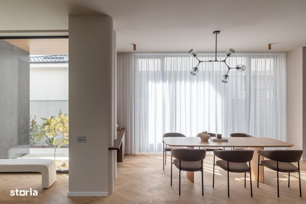 Această vilă impresionantă cu influențe japoneze îmbină armonios estetica tradițională niponă cu confortul modern, oferind un spațiu de locuit unic, elegant și echilibrat, combinație perfectă între eleganța exotică și confortul modern. Proprietatea este o oază de liniște și rafinament, ideală pentru cei care caută un refugiu exclusivist iar proiectul este destinat celor care sunt în căutarea mix-ului perfect între standarde de calitate superioară, funcționalitate, confort și intimitate, într-o zona liniștită. Situată într-o locație privilegiată Soseaua Pipera - Bdul. Erou Iancu Nicolae, această proprietate impresionează prin arhitectura inspirată de tradițiile japoneze, cu accente naturale, finisaje rafinate și o atmosferă relaxantă. Caracteristici principale: - Design autentic: Elemente de lemn masiv, piatră naturală și structuri deschise care permit integrarea armonioasă cu natura. - Spații generoase: Living spațios cu deschidere către o terasă luxuriantă, dormitoare aerisite și băi elegante cu accente exotice. - Grădină tropicală: Vegetație luxuriantă, alei din piatră și un ambient ce creează senzația unei stațiuni private. - Piscină infinity: Piscină cu margini discrete și apă cristalină, ideală pentru momente de relaxare. - Oază de liniste: Perfect pentru reîncărcarea energiilor. - Luminozitate naturală: Ferestre largi și deschideri panoramice, care permit luminii să umple fiecare încăpere. Descriere technică: Vilă P+1 finalizată in anul 2025 avand 4 dormitoare, 6 băi, living cu bucătărie deschisă, zona dinning, spălătorie, 1 garaj, 2 terase acoperite si 3 locuri de parcare in curtea proprietatii. Tamplăria este din aluminiu cu geamuri tripan cu protectie solara, incalzire in pardoseala de la Uponor automatizata pe fiecare camera individual cu control prin telefon, racire si incalzire prin unitati de aer conditionat din tavan, parchet Chevron triplistratificat, fatada ventilata cu HPL,priza de 380 pentru incarcare masini electrice in garaj, piscina este incalzită, gradină amenajată complet, mobilată asa cum reflectă si pozele din anunt. Această vilă este o expresie a artei japoneze a locuirii, combinând frumusețea tradițională cu funcționalitatea modernă. Un adevărat sanctuar de pace și eleganță pentru cei care apreciază simplitatea sofisticată a stilului japonez. Programează-te acum pentru o vizionare! Dacă aveți o proprietate de vânzare/închiriere sau sunteți interesați de o proprietate aflată în portofoliul agenției noastre, vă rugăm să ne contactați la numărul de telefon din anunț sau pe adresa de email.