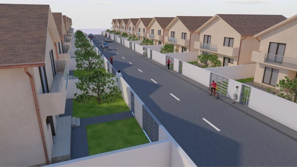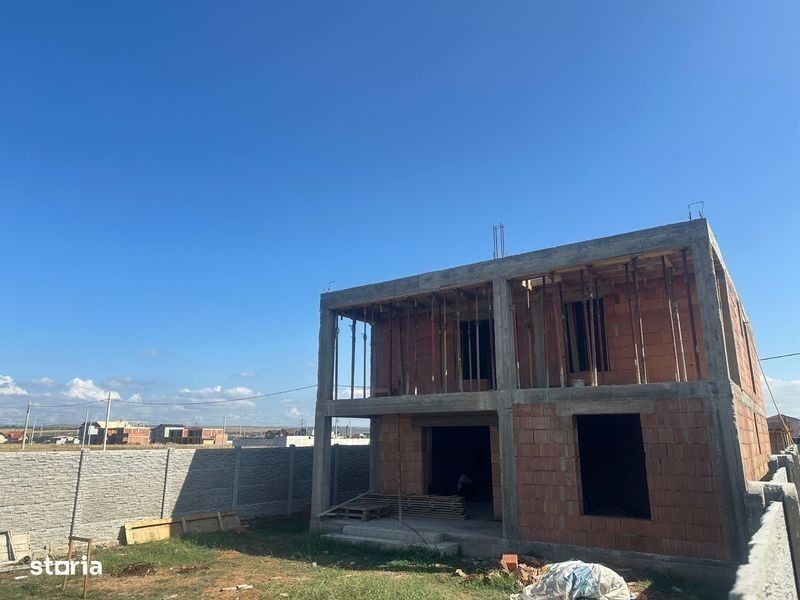 Cartier nou in zona veterani cu toate utilitatile. Va ofer spre vanzare o vila intr-un ansamblu de case individuale, regim de inaltime P+ 1 avand o suprafata utila de 150 mp si teren 500 mp. Compartimentarea casei: - La parter este zona de zi, formata din zonele: hol,living,bucataria,baie,camera tehnica, dormitor - Iar la etaj avem: hol, 3 dormitoare, baie,baie matrimoniala, dressing Utilitati: apa, canal, curent, gaz Geamuri tripan, caramida porotherm robust. Casele se vor vinde la gri exterior si rosu interior. Casele sunt in stadiul de constructie. Terenul va fi imprejmuit cu gard beton. Se accepta plata si in rate stabilite de comun acord !