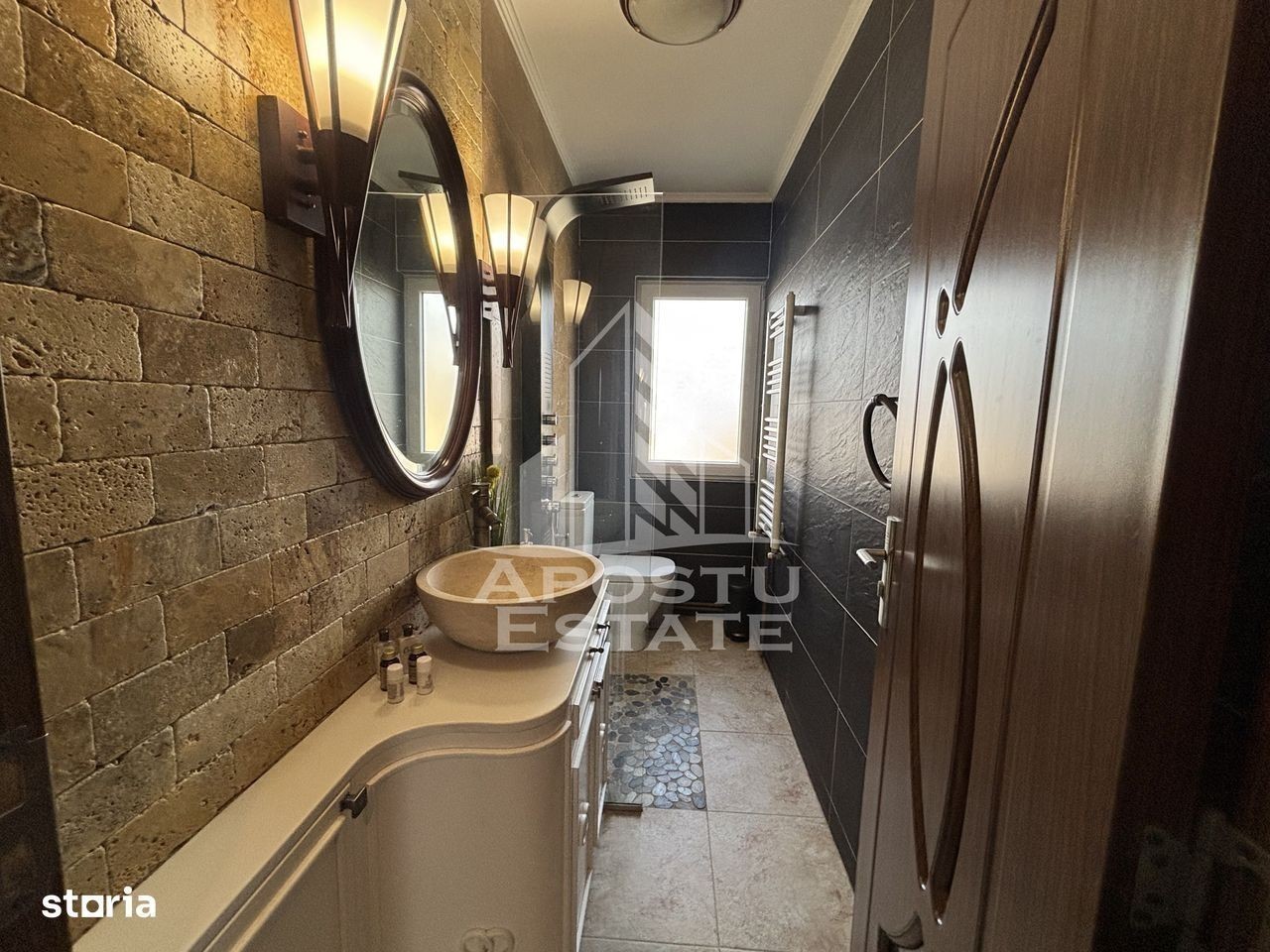 Apostu Estate va propune spre vanzare un apartament complet mobilat si utilat, situat in zona Turist - Calea Sagului, in imediata apropiere de Shopping City. Apartamentul este amplasat la etajul 5 (etaj adaugat in 2015, bloc anvelopat), are 3 camere, 2 bai (dintre care una cu acces din dormitorul matrimonial) si bucatarie inchisa, oferind o compartimentare eficienta si spatii optimizate. Detalii suplimentare: • Suprafata utila generoasa • Centrala proprie pe gaz cu termostat Wi-Fi Salus (control prin aplicatie) • Aer conditionat Tesla • 2 televizoare Sony • Frigider Samsung side by side • Masina de spalat rufe • Masina de spalat vase • Cuptor microunde Samsung • Cuptor Bosch • Plita pe inductie Whirlpool • Hota Elica Baia matrimoniala este placata cu piatra naturala si travertin, iar mobilierul este realizat din MDF vopsit. Un plus aparte este pantofarul generos, cu o capacitate de stocare de pana la 180 de perechi de pantofi. Si da, ramane si barul! Cat de plin… ramane de discutat! Pentru mai multe detalii sau poze, va rugam sa ne contactati in privat. Va asteptam cu drag la vizionare!