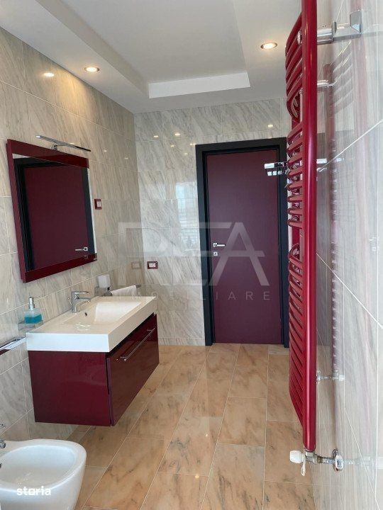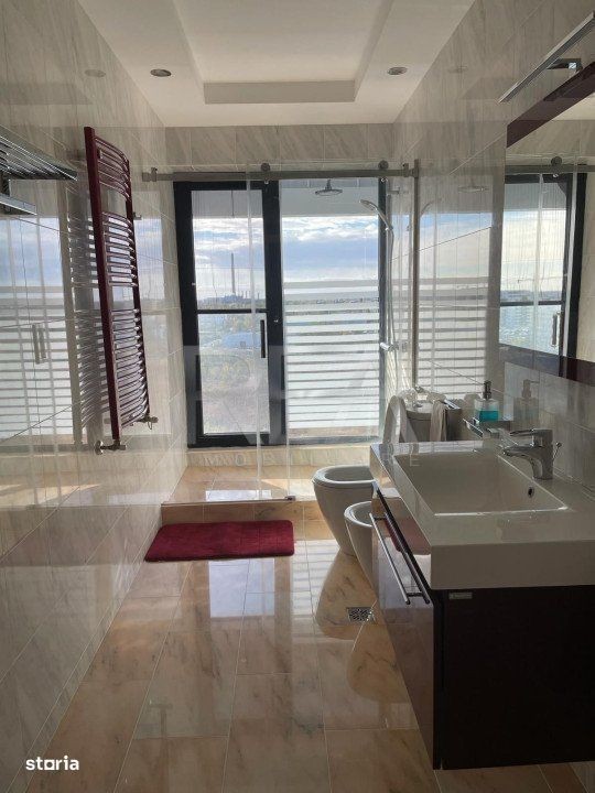 R.E.A. Imobiliare Apartament cu 3 camere, situat la etajul 10/10+E tehnic, intr-un imobil finalizat in 2018, suprafata totala de 79,09 mp, din care suprafata utila 71,15 mp, balcon 7,94 mp. Configuratie: 2 dormitoare, living, bucatarie, 2 bai si 2 balcoane. Sistem incalzire: centrala proprie. Finisaje premium incluse, marmura Ruschita in hol, living, bai, parchet triplustratificat stejar 12mm in dormitoare. Apartamentul este dotat cu rulouri electrice pe telecomanda in dormitoare si living, aparat de aer conditionat multi split cu 3 unitati interioare, spoturi led dimabile, usi MDF semilucioase cu broasca magnetica si balamale ascunse. Accesorii in ambele bai GROHE (suport prosoape, cuier halat, suport sapun, suport periute dinti, perie toaleta, set dus cu baterie cu termostat), Bideu, lavoare, vas WC cu functie bideu IdeaStandard, videointerfon, unitate centrala de aspirat (se monteaza in perete si astfel se va muta doar furtunul de aspirat in fiecare camera, fiind conectat la prize speciale), Complex supravegheat video. Acces camere si bariera intrare din aplicatie, 2 lifturi. Loc de parcare inclus in pret. Blocul este racordat la toate utilitatile. Ambient linistit, proximitate de Militari Shopping Center, Ballrom Militari Residence, Lidl, Decathlon, Dacia Meridian Vest, Restaurant Vulturul. Parcare la liber. Acces la transportul în comun-> 3 minute pana la statiile STB. Pentru detalii si vizionari, va rugam să ne contactați, specificand codul de identificare P6430.