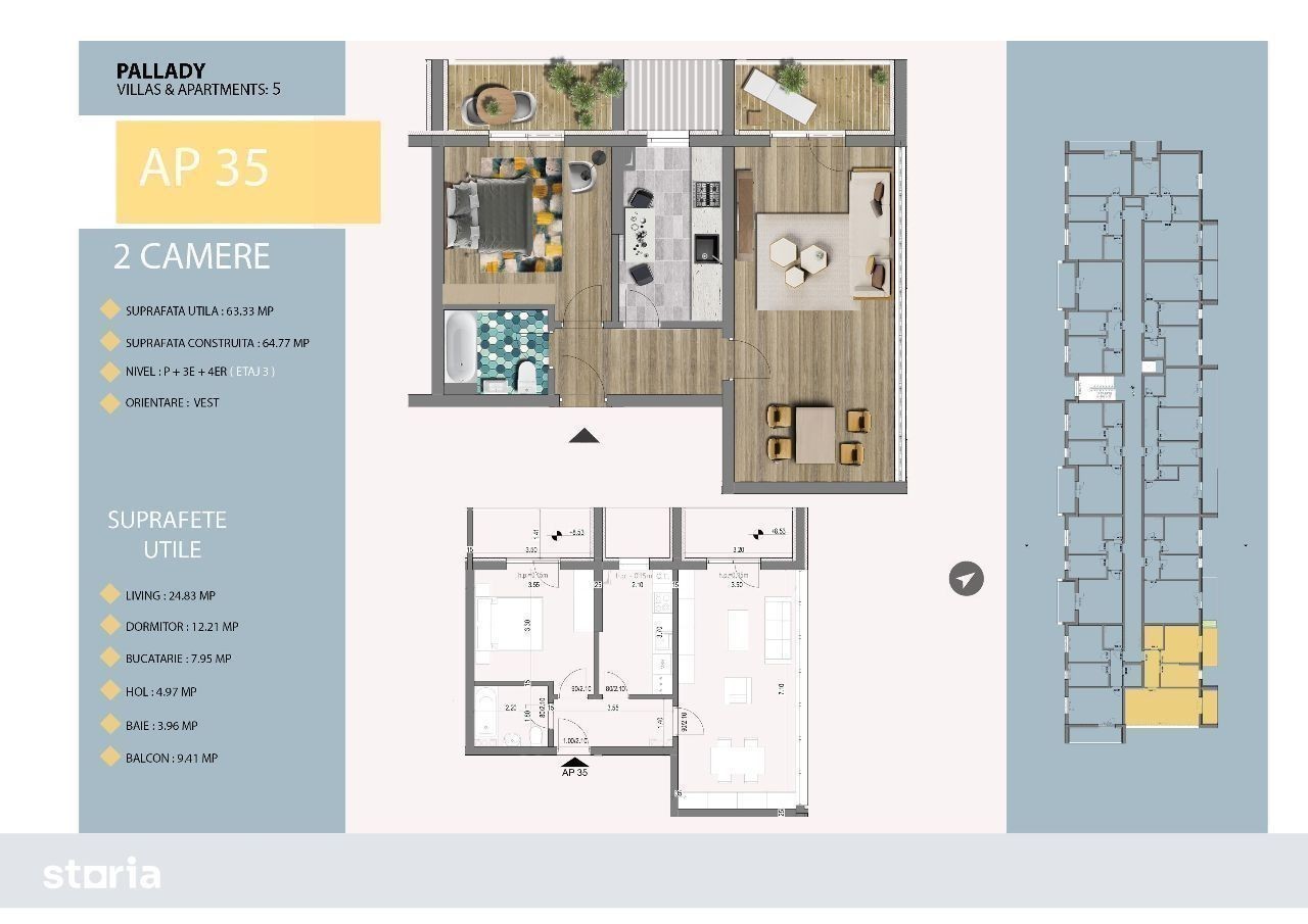 Apartament de 2 camere decomandat situat la parter, avand o suprafata de 64 mp utili, intr-un ansamblu rezidential din zona Titan (trapezului) zona frumoasa si aerisita. Construcția este realizată din diafragma de Beton si BCA CELCO 25 CM. Compartimentarea interioara a apartamentelor este realizata din BCA de 15 cm. Apartamentele sunt realizate cu tencuiala mecanizata Baumit.
