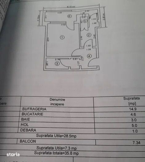 Garsoniera decomandata 35mp, zona Viziru 1 Parter cu balcon