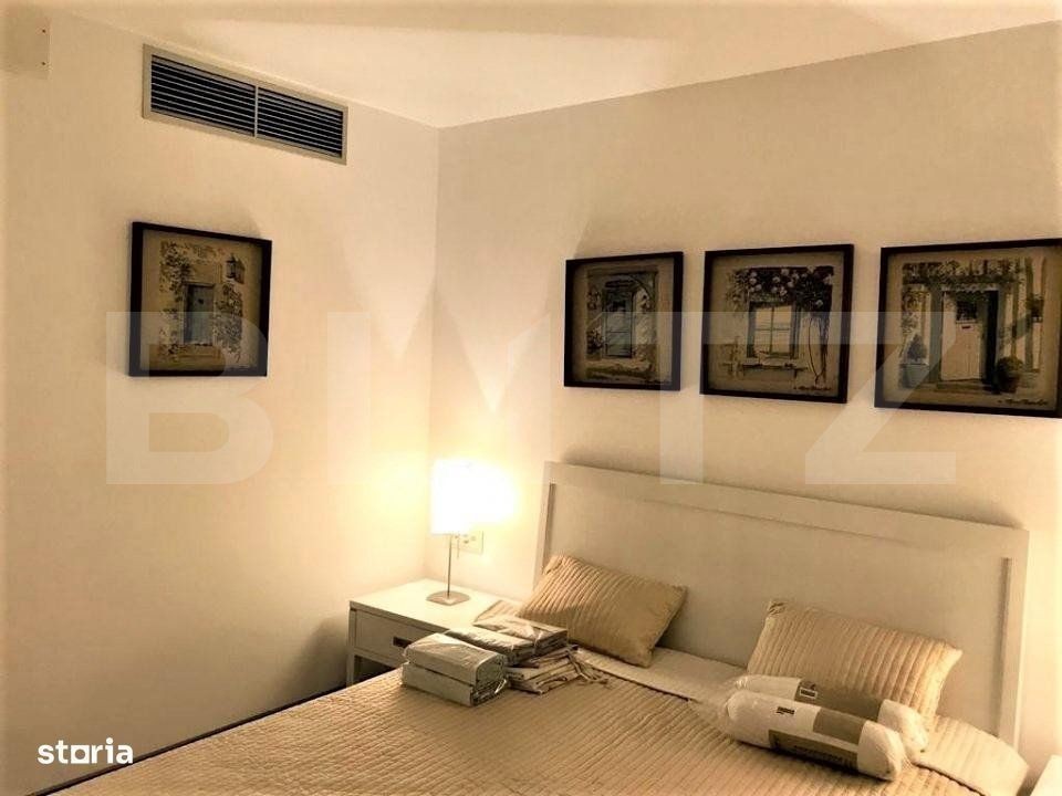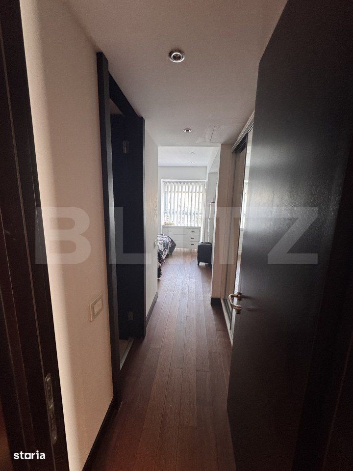 Blitz va propune un apartament de 2 camere, situat la etajul 3, in zona Arcul de Triumf, într-un complex de locuințe deosebit de elegant și modern, situat într-o zonă centrală și căutată a orașului. Complexul este situat in apropiere de parcul Herastrau si de statia de metrou Aviatorilor. Zona este una linistită și elegantă, cu multe străzi îngrijite, parcuri și zone verzi. Locatarii beneficiază de spaţii generoase de petrecere a timpului liber: un lobby de 300mp, sala de fitness, sună, jacuzzi, loc de joacă pentru copii, spaţii verzi amenajate şi trei piscine. Complexul beneficiaza de securitate 24 din 24 şi personal la recepţie. Apartamentul este compartimentat astfel: Living, dormitor, bucatarie, toaleta de serviciu, baie matrimoniala, terasa, 2 Dressing-uri si 2 Holuri generoase. Sistemul de incalzire se afla in pardoseala cu ventilo-convectori. Un loc de parcare subteran disponibil la pret de 20000 Eur Acest apartament de lux este soluția perfectă pentru oamenii care caută o locuință comodă și elegantă în inima orașului. Va asteptam la vizionare!