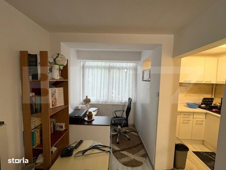 COD INTERN ANUNT V/4574. AGENTIA MAO IMOBILIARE !NU SE PERCEPE COMISION DE LA CUMPARATOR! Echipa Mao Imobiliare propune spre vanzare apartament decomandat, situat in Cornisa, strada Gheorghe Marinescu, aproape de UMFST, statii de autobuz, magazine. Apartamentul se afla la etajul 1 al unui bloc format din 4 etaje, bloc izolat termic, are o suprafata utila de 33 mp, compus din 1 camera (marita), baie, bucatarie, hol, camara, balcon inchis cu termopan. Dotat cu centrala termica, geamuri termopan, usa metalica la intrare, usi interioare schimbate, gresie, faianta, parchet melaminat, mobila de bucatarie si electrocasnice schimbate recent. Cei interesati pot achizitiona apartamentul mobilat si utilat complet, la pretul de 98,000 Euro. Pentru mai multe informatii ne puteti contacta la numerele de telefon: