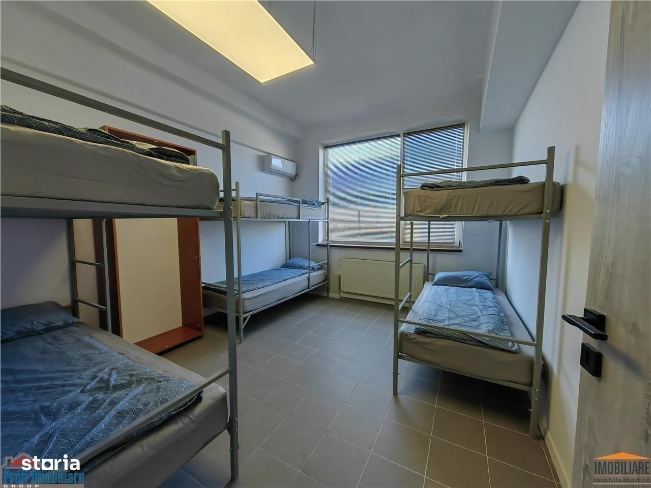 Profi Imobiliare in parteneriat cu Imobile Arad va ofera spre vanzare in exclusivitate in municipiul Arad in cartierul Aradul Nou o locatie NOUA special pregatita pentru cazare de muncitori de pana la 40 de persoane. Locatia se preteaza pentru cazare muncitori sau pentru activitati de birouri. Descriere apartament: 6 camere cu 6 paturi 1 camera cu 4 paturi 3 bai individuale 1 bucatarie 1 sala de mese Pentru cazare sunt disponibile in configuratia actuala 40 de locuri de cazare. Pentru birouri sunt dispobilie 7 camere mari + 1 bucatarie + 1 loc de luat masa. Amenajari: clime cu racire-incalzire in fiecare camera, centrala proprie pe gaz, paturi, masina de spalat, mobilier bucatarie, mese, cu mentiunea ca toate amenajarile si mobilierul sunt noi: paturi, saltele, mese, lenjerie, clime, sisteme iluminat, etc. Pozitionarea: jud. Arad, mun. Arad, langa gara din Aradul Nou, in apropiere de supermarket, zona comerciala, tramvai, autobuz, tren, etc. Utilitati: curent monofazic, apa, internet, gaz, canalizare Proprietatea se vinde exact cum se vede in poze la pretul de 220.000 euro negociabil. Pentru detalii, vizionare si ofertare va rog sa ne contactati la telefon: