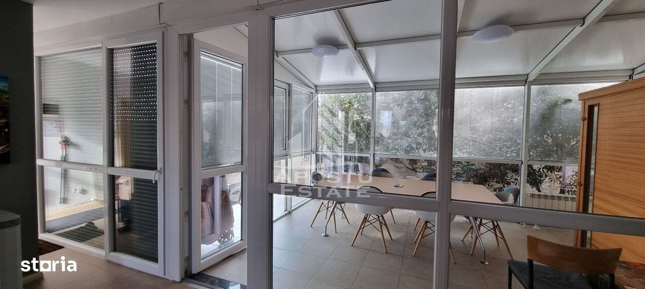Apostu Estate vă propune spre vânzare un apartament cu adevărat unic pe piața din Timișoara, situat în zona Bălcescu, una dintre cele mai apreciate zone rezidențiale ale orașului - liniștită, accesibilă și aproape de puncte de interes majore. Caracteristici principale: Suprafață utilă: 119 mp Terasă proprie: 68 mp în drept de proprietate 2 garaje subterane 5 camere, 2 băi, 3 terase (una tip wintergarden, închisă și încălzită) Situat la parter înalt, într-o clădire P+3 (construcție 2008, structură din beton armat) Dotări și finisaje premium: Aer condiționat în fiecare cameră (8 unități interioare, 3 exterioare) Încălzire separată pe zone, cu 2 centrale Viessmann (instalate recent) Rulouri exterioare metalice, acționate electric Aspirator central, saună, sistem smarthome, cablare rețea și SAT în pereți Sistem complet de securitate: alarmă, camere video 2 intrări - una privată, cu acces direct din terasa proprie Flexibilitate în compartimentare: Datorită structurii din beton armat, apartamentul poate fi recompartimentat ușor sau împărțit în două zone distincte: Zonă privată si zonă birouricu intrari separate. Preț: 250.000 EUR + TVA (vânzare de pe firmă) La prima vedere prețul poate părea ridicat, dar realitatea este cu totul alta: Include 2 garaje subterane un avantaj major în zona centrală Terasele generoase sunt în drept de proprietate, nu simple anexe comune Finisajele și dotările depășesc clar standardul pieței - apartamentul este gata de locuit, fără sa necesite renovare. Suprafață totală utilizabilă (interior + terase) mult peste media ofertei din zonă Acest apartament oferă versatilitate, confort, siguranță și eficiență energetică, într-o zonă excelentă. Este o alegere ideală pentru familie, locuire modernă cu spațiu de lucru sau o investiție imobiliară solidă. Disponibil imediat. Pentru mai multe detalii sau pentru programarea unei vizionări, te invităm să ne contactezi în privat.