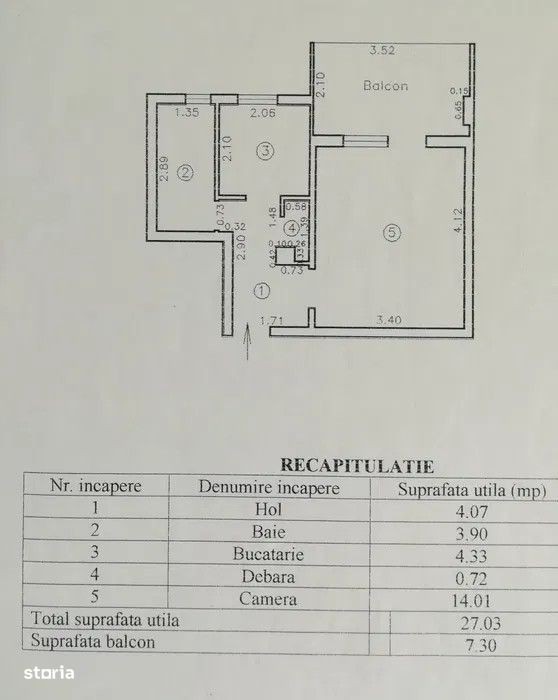 Garsoniera zona Progresu, Suprafata utila 27mp plus 7mp balcon