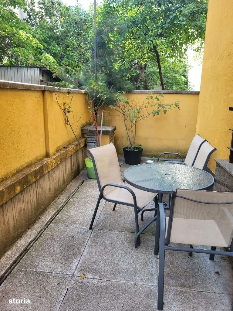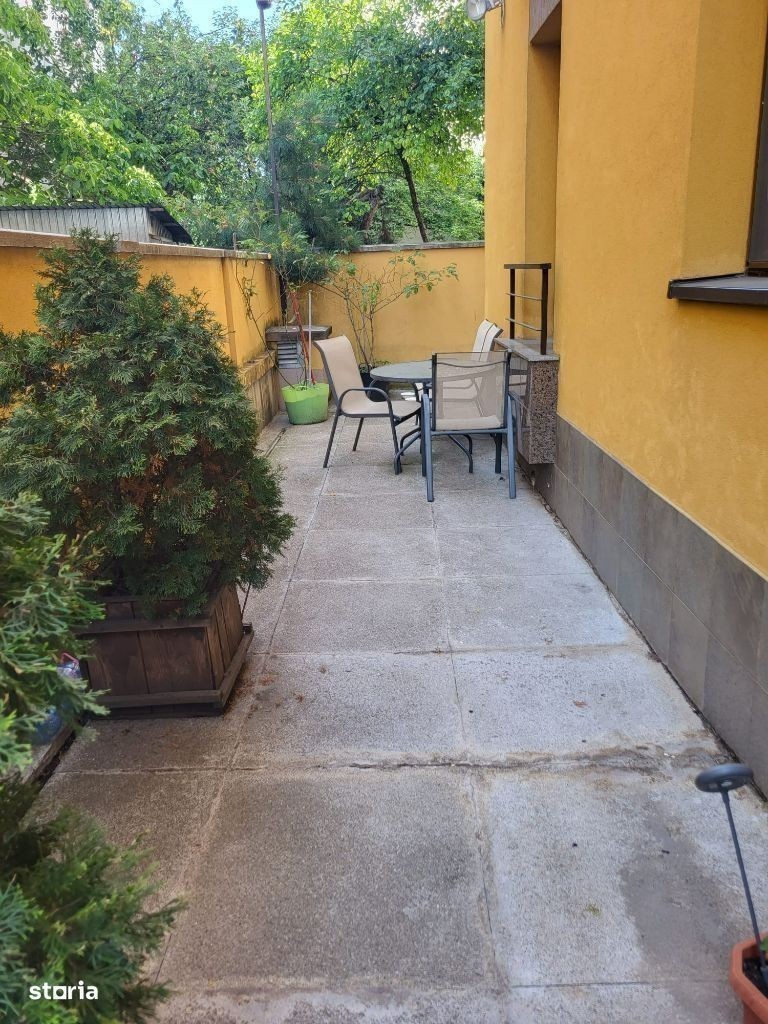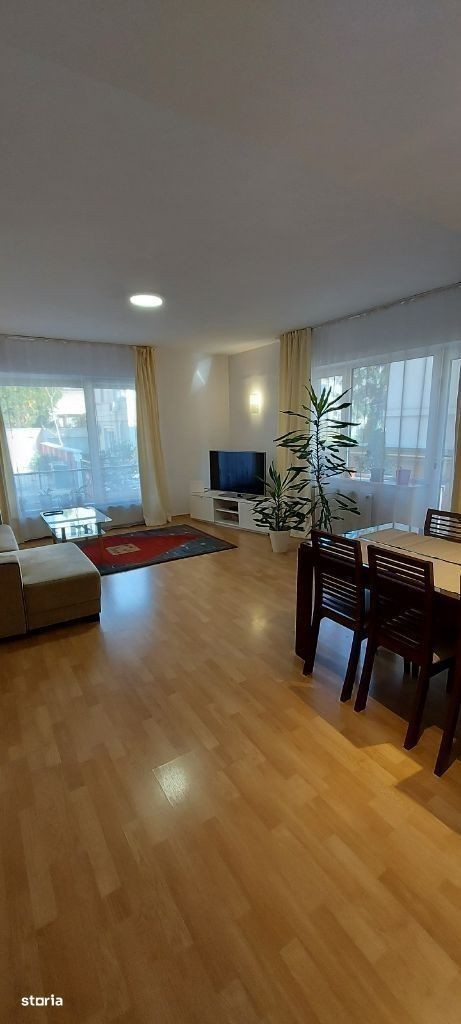 Apartament in bloc boutique 2004, intre rarele apartamente noi in zona, langa Metrou Aviatorilor, i, restaurante, parcuri si cumparaturi. Situat la parter inalt are o suprafata utila de 80 mp design estetic si inteligent functional cu living generos 2 dormitoare matrimoniale si bucatarie inchisa.foarte luminos si aerisit din 3 directii, Centrala proprie.Este situat intr-un imobil de parter+3 etaje, un singur apartament pe fiecare etaj. Cu iesire directa din living si drept de folosinta in curtea interioara, parcare-25% din garaj in suprafata de 104 mp +2mp anexa, recent renovata cu finisaje de calitate, minimalist dar luxos.