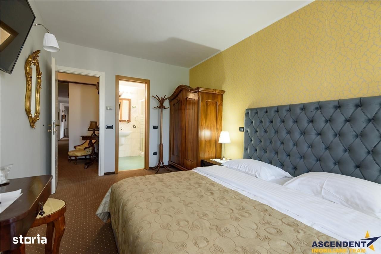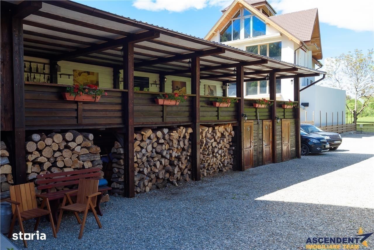 Comision cumparator 0%. ASCENDENT IMOBILIARE va prezinta spre vanzare o REPREZENTARE EXCLUSIVA materializata printr-o proprietate fantastica, respectiv o pensiune-restaurant situata in Bran, cu o pozitionare privilegiata, la 300 m de castelul Bran si la 20 de minute de Brasov, reprezentand investitia ideala intr-un imobil tip pensiune, care prin design si arhitectura, se integreaza perfect in povestile acestui loc. Pensiunea este realizata cu mult bun gust, imbina armonios elementele clasice cu cele moderne si creaza o armonie perfecta de cromatica si stil, cu peisajul montan si cu specificul Branului. Imobilul este dispus pe S+P+E+M+Pod, in suprafata utila de 600 mp si cu o configuratie pe 18 de camere, din care 17 individuale, cu baie proprie, restaurant, grup sanitar, bucatarie profesionala, subsol, camera tehnica, o terasa superba, office, receptie, spatii conexe si dependinte. Proprietatea este amplasata pe un teren plan, in suprafata de 883 mp, pe care se pot amenaja cu usurinta elemente de peisagistica, loc de joaca, foisor, zona de barbeque si multe alte facilitati. Completeaza prin faptul ca detine front la doua strazi, se afla in zona de tranzit Bran - Rucar - Pitesti, dispune de o terasa generoasa si are in proximitate toate locatiile de interes, precum magazine, parc, muzeu, farmacie, statie de autobuz, etc. Din punct de vedere tehnic, cladirea beneficiaza de apa la retea, curent electric trifazic, canalizare, gaz, asfalt, internet prin fibra optica si iluminat public, parcare auto atat in curte, cat si in fata, iar constructia este extrem de solida, realizata cu materiale de calitate, pereti din caramida, stalpi si plansee din beton armat, grinzi solide, acoperis cu tigla, fatada exterioara adaptata stilului autohton, pentru a da si mai mult farmec proprietatii. Proprietatea este clasificata cu 3 stele si se preda la cheie, oferind viitorului proprietar un imobil deosebit, cu un potential urias si un business functional din prima zi. Daca doriti sa deveniti parte din elita investitorilor in turismul romanesc, aveti sansa prin achizitia acestei perle montane, sa oferiti turistilor din intreaga lume, o experienta memorabila si autentica. Consultant dedicat acestei oferte, domnul Adrian Petrescu Telefon Whatsapp: