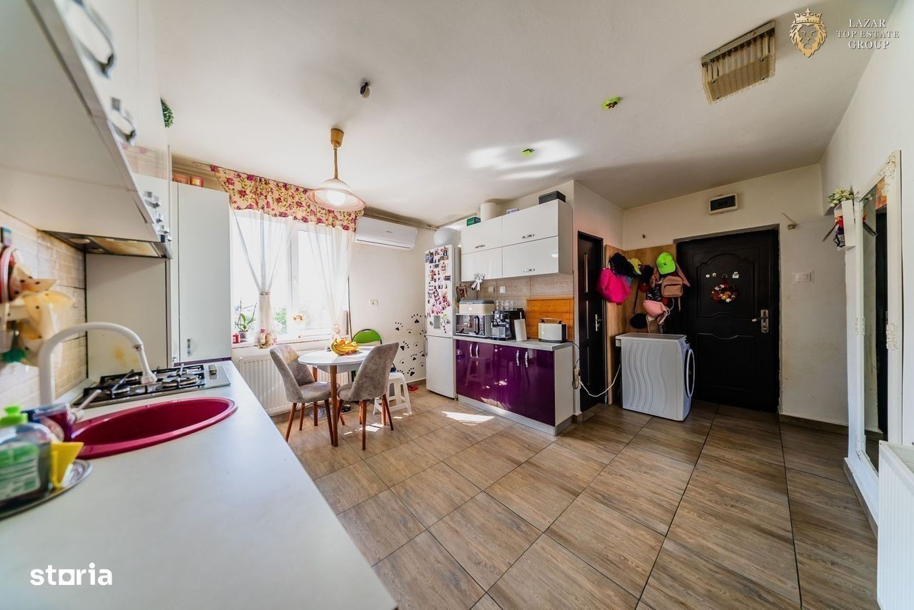 Vă prezentăm un apartament spațios și complet funcțional, situat chiar în centrul localității Vladimirescu - ideal pentru o familie! Proprietatea este decomandată, are o suprafață totală de 110 mp. Este complet mobilată și utilată în bucătărie, gata pentru a fi locuită imediat. Printre îmbunătățiri recente se numără: Centrală termică nouă (2024) și calorifere schimbate Acoperiș nou, schimbat anul trecut, cu garanție 15 ani 2 locuri de parcare în lateral Pod și boxă în pivniță - ideale pentru depozitare suplimentară Balcon închis transformat în dressing - spațiu inteligent și practic Proprietatea este ideală pentru cei care își doresc confort, spațiu și o locație centrală, într-o zonă liniștită, aproape de toate facilitățile locale. Te astept la vizionare sa te convingi de acest apartament modern situat intr-o locatie centrala!