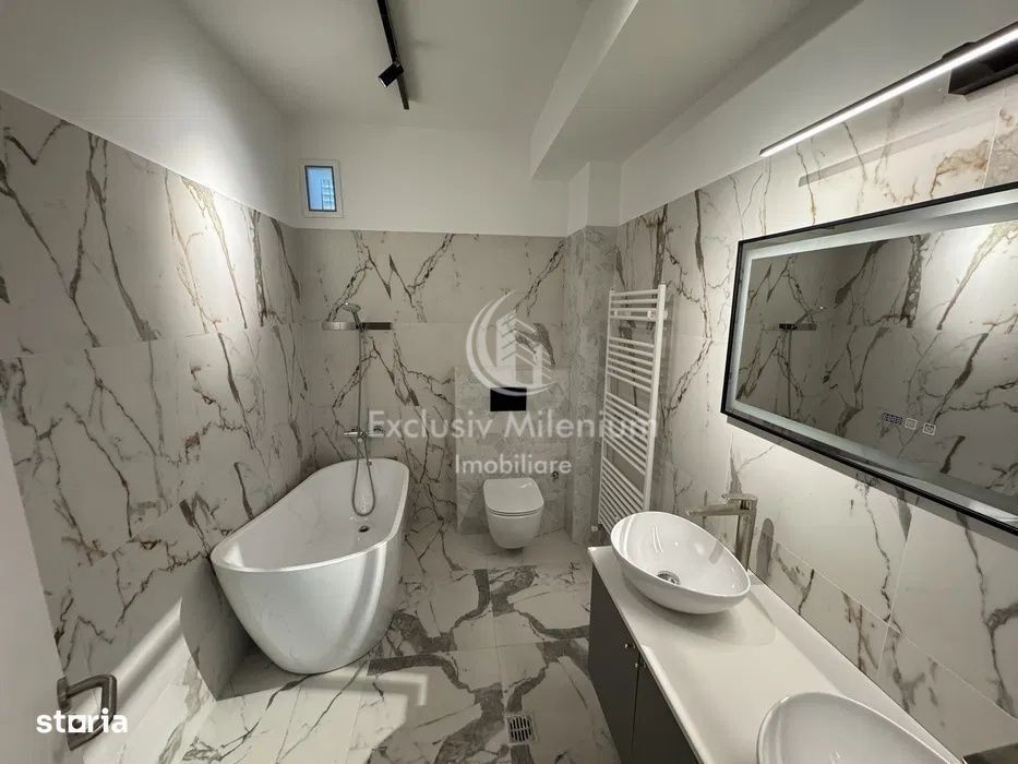 Important ! Agentie imobiliare specializata in inchirierea de spatii de birou/ birouri, spatii comerciale, case/ vile, apartamente nemobilate. In spatiile prezentate de noi se poate stabili punct de lucru si/sau sediu social pentru firma/firmele Dv. Două apartamente noi de închiriat - Cartier Tei, etaj 1 - ideal locuire sau firmă Oferim spre închiriere două apartamente aproximativ identice pe acelasi etaj al unui bloc nou finalizat în 2025, în cartierul Tei. Este prima închiriere. Fiecare apartament are o suprafață utilă de aproximativ 100 mp, cu un living generos cu bucătărie open space, 2 dormitoare, 2 băi și nu mai puțin de 3 debarale - spațiu cât cuprinde! Plus balcoane generoase Incalzirea se face cu centrala proprie iar separat se pot monta instalatii AC. Accesul se face direct din stradă, cu lift/scari, iar la cerere putem oferi și locuri de parcare. La parter există deja o firmă de avocatură, deci spațiul se pretează foarte bine și pentru activitate de birou, pe termen mediu sau lung. Putem lua in calcul inclusiv mobilarea si utilarea in functie de nevoile celor interesati Pretul de 1100 euro este prețul NET. Vecinitati : Barbu Vacarescu, Floreasca, Bd Lacul Tei, Promenada, Stefan cel Mare, Mircea Eliade, Dorobanti.
