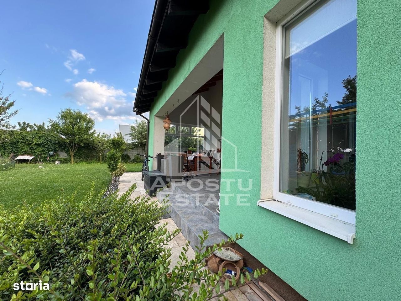 APOSTU ESTATE va propune spre vanzare o casa individuala cu 4 camere, situata in localitatea Mosnita Veche, intr-o zona linistita, cu acces facil catre Timisoara. Imobilul are un regim de inaltime Parter + Pod, o suprafata utila de 120 mp si este amplasat pe un teren generos de 700 mp. Anul constructiei este 2016, structura din beton, zidarie din caramida. Utilitati: Curent electric, apa, gaz, fosa septica, CATV, fibra optica. Compartimentare: Proprietatea este compartimentata eficient, fiind impartita in doua zone: Zona de zi: Hol Living spatios Baie de serviciu cu cabina de dus Bucatarie mobilata si utilata, cu blat din piatra compozit Terasa acoperita de aproximativ 15 mp cu acces din bucatarie si vedere spre gradina Zona de noapte: 3 dormitoare, dintre care unul matrimonial cu baie proprie si dressing Pod inalt utilizabil pentru depozitare, amenajabil ca spatiu locuibil (sala sport, loc de joaca etc.), cu acces atat din interior cat si pe scara exterioara. Finisaje si dotari: Usa intrare: PVC Usi interioare: celulare Tamplarie PVC cu geam tripan Podele din parchet si gresie Incalzire prin centrala proprie pe gaz, cu calorifere Casa se vinde complet mobilata si utilata: plita, cuptor, hota, masina de spalat rufe, masina de spalat vase, frigider cu congelator Curte amenajata: 4 locuri de parcare Casuta de gradina cu beci pentru depozitare Loc de joaca pentru copii Pomi fructiferi pe rod Pentru mai multe detalii sau pentru a programa o vizionare, nu ezitati sa ne contactati! CP2553475