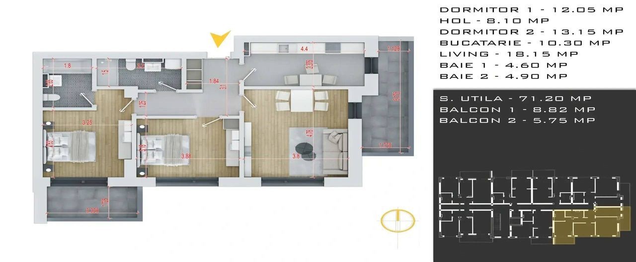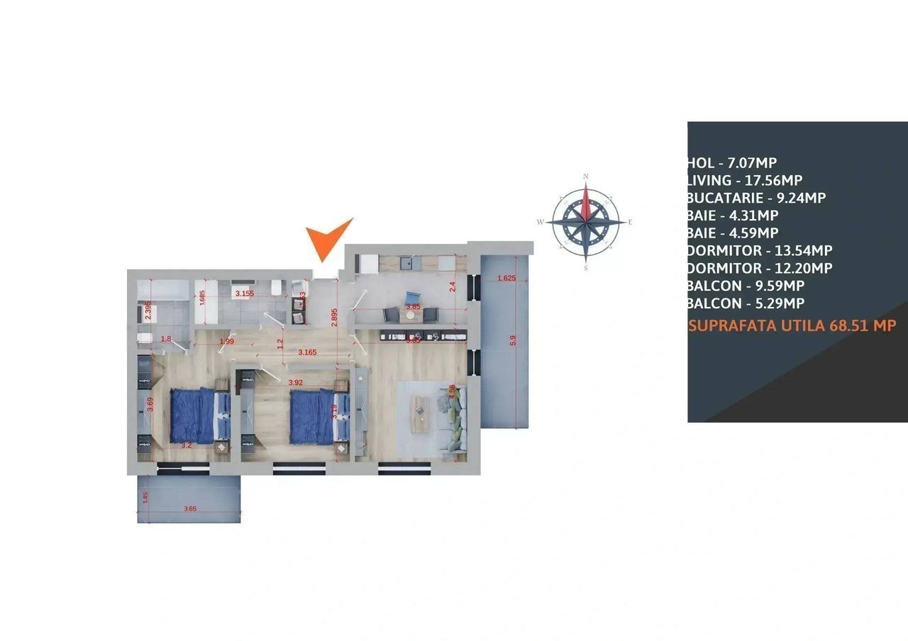 Esti in cautarea unui apartament de 3 camere cu balcon generos? Hai sa il vedem in realitate. Apartemnt de 3 camere decomandat cu o suprafata utila totala de 85 mp, 2 bai complet echipate, si 2 balcoane generoase de aprox 15 mp. Imobilul este construit pe cadre de beton armat, cu zidarie exterioara de 30 cm, compartimentare interioara de 11,5 cm, iar la exterior izolatie cu polistiren EPS 80 pentru un confort termic sporit. Apartamentul se prada cu gresie, faianta, parchet, usi interior de lemn, obiecte sanitare in baie, la alegere dintr-un paletar extins. Asemenea apartamentul dispune de incalzire in pardoseala si spatii vitrate mari cu geam tripan ce ofera lumina naturala in toate camerele. Imobilul este contorizat individual si bransat la toate utilitatile sector 3, apa, gaz, canalizare, energie electrica. Pretul afisat este pentru un avans de 90% din surse proprii si nu include TVA. Pretul pentru plata prin credit este de 122800 Euro, plus TVA. Poze cu tiltu de prezentare. Direct Dezvoltator. Zero Comision. Hai sa vezi in realitate locuinta pe care o vei numi "Acasa"! VAUNT ID: 106311