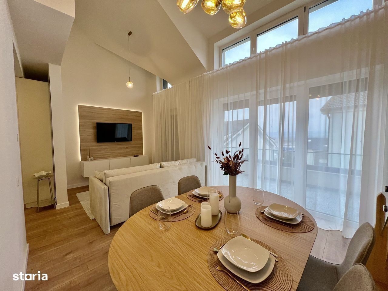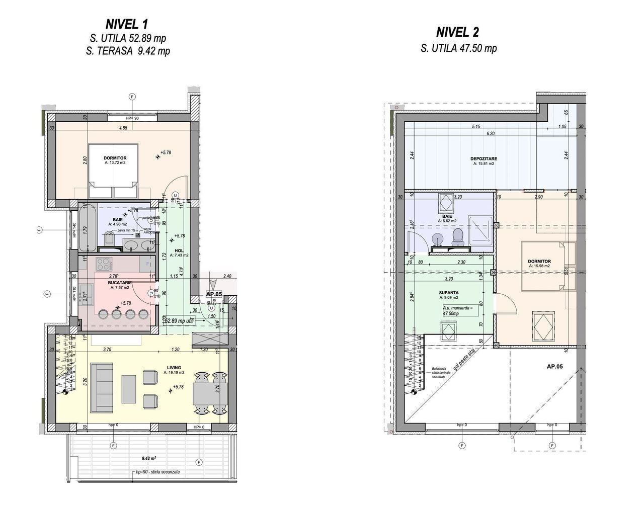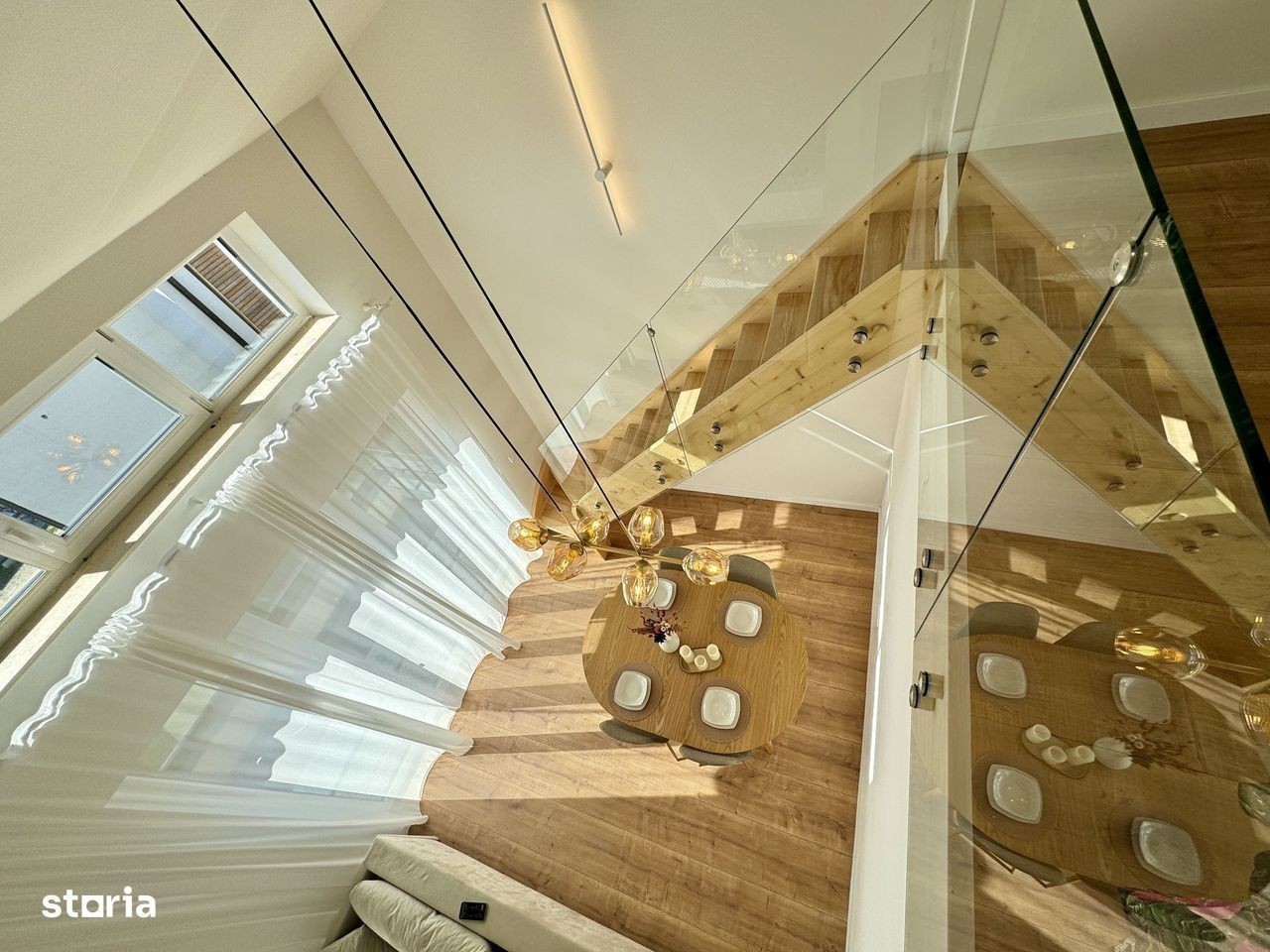 Locuință spațioasă pe două niveluri - vedere superbă, finisaje moderne. 100,3 mp utili + terasă 9,42 mp O oportunitate rară într-o zonă aerisită, aflată într-un imobil cochet cu regim redus de înălțime. Această unitate este situată la etajul superior (2/2), într-o clădire cu doar 6 locuințe, oferind intimitate și confort. Configurație interioară inteligentă, desfășurată pe două etaje: Nivelul 1: Hol, zonă de zi luminoasă, bucătărie separată, dormitor, baie și logie generoasă orientată spre sud Nivelul 2: Dormitor, baie și spațiu dedicat depozitării (accesibil din dormitor). Se predă finisat la cheie. Beneficii importante: - Înălțime de peste 5 metri în zona de zi - senzație de deschidere și spațiu - Încălzire în pardoseală pentru confort termic optim - Priveliște deschisă, neobturată - Loc de parcare inclus - Jaluzele electrice - Spații de depozitare bine integrate. Localizare: parte vestică a orașului, în proximitatea unor artere de circulație cu trafic redus, într-un cartier cu vegetație matură și acces facil spre zona industrială, aeroportla 15 minute de centrul Sibiului. Modalitate de plată: Fonduri proprii sau credit bancar. Fotografiile sunt cu titlu de prezentare - mobilierul și electrocasnicele nu sunt incluse. * Pretul include TVA.