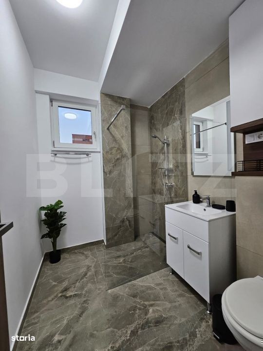 Blitz va ofera spre inchiriere un apartament cu 2 camere, cu o suprafata utila de 43 mp si 14 mp suprafata totala, situat la etajul 8 al unui bloc nou din cartierul Brazda lui Novac. Acesta reprezintă o oportunitate excelentă, fiind la prima închiriere și dispunând de dotări de ultimă generație. Cu un design modern și elegant, apartamentul beneficiază de un sistem eficient de încălzire în pardoseală, asigurând confortul termic dorit în orice moment al anului. Aerul condiționat oferă posibilitatea de a ajusta temperatura în funcție de preferințele tale. Dotat cu un televizor smart, apartamentul devine un spațiu de relaxare ideal, unde poți urmări emisiunile și filmele preferate. Bucătăria este echipată cu o plită electrica, iar utilitățile includ o mașină de spălat rufe, facilitând gestionarea activităților zilnice. Localizarea este remarcabilă, având în imediata apropiere o piață de legume proaspete, market LaDoiPasi, restaurante si magazine. Accesul facil la stații de taxi și mijloacele de transport în comun completează beneficiile oferite de acest apartament. Această proprietate reprezintă nu doar un spațiu locativ, ci și o oportunitate de a te bucura de confortul și facilitățile oferite de un mediu modern și bine amplasat în orașul Craiova. Beneficiaza de un loc de parcare privat in parcare blocului. Apartamentul este in curs de mobilare si se v a preda complet mobilat si utilat. Pentru mai multe informatii, va asteptam cu drag la vizionare!