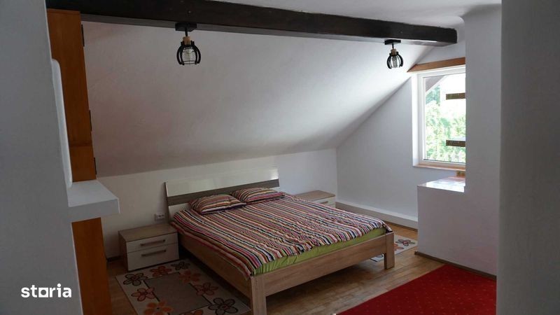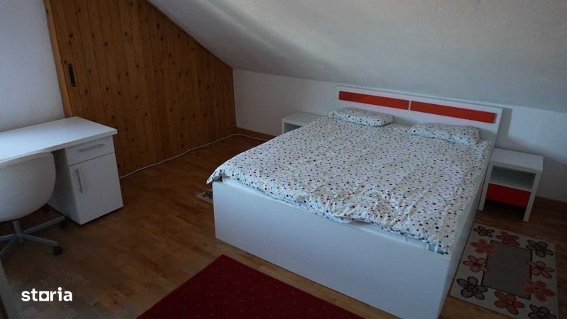 Va invitam sa descoperiti farmecul unui apartament deosebit, dispus pe doua nivele (etaj si mansarda), parte dintr-o vila eleganta situata intr-o zona de prestigiu din Brasov. La doar cativa pasi de inima vibranta a Brasovului si la 50 de metri de Tampa, acest apartament ofera un amestec perfect intre natura si confort urban, cu acces imediat la traseele montane si aleile de sub Tampa, ideale pentru plimbari relaxante sau aventuri in aer liber. Locatie Centrala si Accesibilitate: La doar 200 de metri de Complexul Comercial Star si la 250 de metri de renumitul Teatru Dramatic "Sica Alexandrescu", acest apartament va pune la dispozitie acces rapid la cultura si divertisment. De asemenea, sunteti la doar 600 de metri de Modarom si de zona pietonala a centrului vechi, unde puteti explora stradutele istorice si savura atmosfera unica a orasului. Aleile de sub Tampa, aflate la doar 200 de metri distanta, ofera un refugiu verde si linistit pentru momentele de relaxare. Interior Rafinat si Functionalitate Maxima Acest apartament, cu o suprafata utila de 150 mp, situat intr-o casa cocheta, emana un rafinament discret si este decorat cu atentie la detalii. Accesul se face individual, pe scara interioara direct din curte. Eleganta si confort: Living generos: Un spatiu luminos si aerisit, perfect pentru relaxare si socializare. Dormitoare confortabile: Trei dormitoare care ofera intimitate si liniste, cu paturi confortabile, spatii ample de depozitare si doua bai. Bucatarie moderna: Complet utilata cu electrocasnice de inalta calitate, unde gatitul devine o adevarata placere. Bucataria este echipata cu: Terasa incantatoare: Un loc perfect pentru a savura cafeaua de dimineata sau pentru a petrece serile racoroase de vara si doua balcoane. Dotari si Facilitati de Top: Acest apartament este echipat cu toate dotarile necesare pentru a va asigura un trai confortabil si placut: Centrala termica proprie: Asigura o incalzire eficienta si constanta, mentinand temperatura optima in fiecare camera. Contorizare individuala pentru toate utilitatile: Gaz, apa si curent electric, pentru o gestionare eficienta si transparenta a costurilor. Loc de parcare in curte: Confortul de a sti ca masina dv. este in siguranta, chiar langa locuinta. Conexiuni rapide: Aproape de transportul public si cu acces facil la principalele artere ale orasului. Acest apartament nu este doar o locuinta, ci o experienta de viata. Este locul unde rafinamentul intalneste functionalitatea, unde veti simti cu adevarat ca ati ajuns acasa. Va asteptam sa descoperiti acest colt de paradis urban si sa va lasati sedusi de farmecul inegalabil al Brasovului. Fara animale de companie: Pentru a mentine confortul si curatenia apartamentului, nu sunt permise animalele de companie. Pret de inchiriere: 1050 euro lunar, NEGOCIABIL.