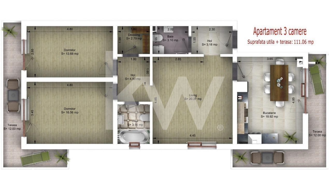 Apartament 3 camere- zona Tractorul Str. Bacovia