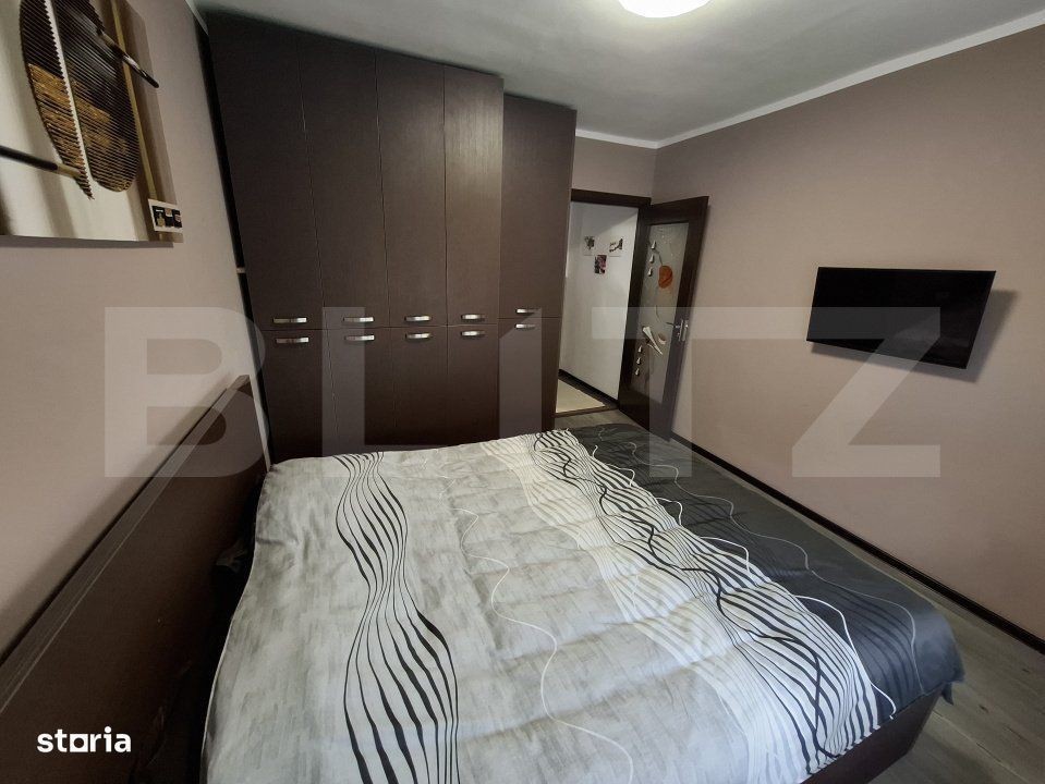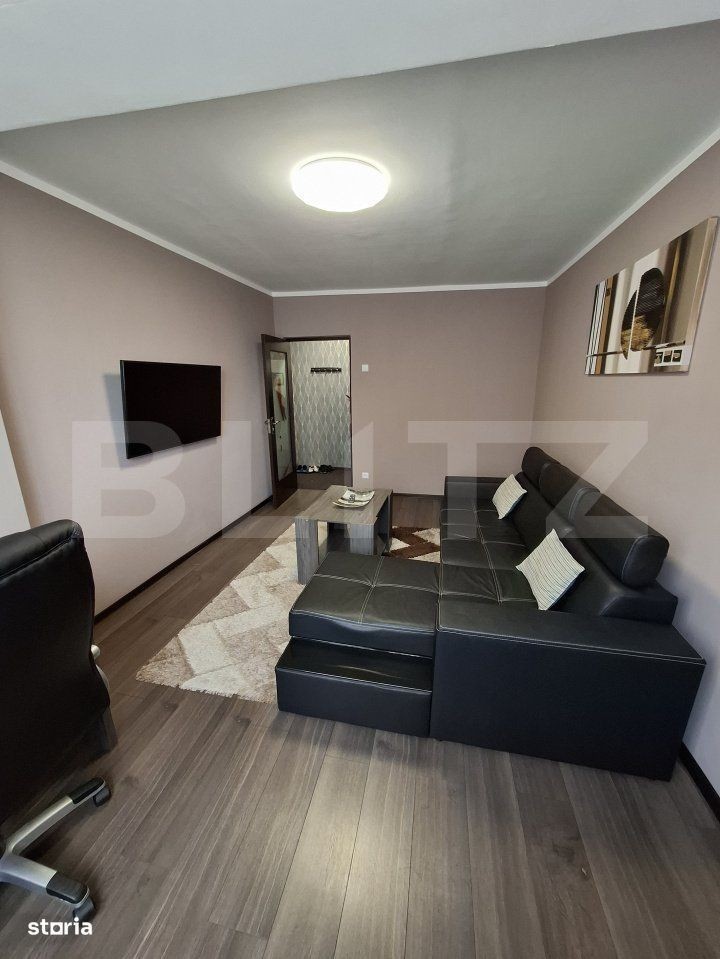 Blitz va prezinta un apartament cu 3 camere complet mobilat și utilat - zona Astra. Preț: 145.000 EUR (negociabil) | 62mp utili | Etaj 8/10 | Loc de parcare concesionat Descoperă un apartament deosebit, ideal pentru locuit sau investiție, situat într-o zonă accesibilă și bine conectată - Astra, Brașov. Caracteristici generale: * Suprafață utilă: 62 mp * Compartimentare: Decomandat * 2 dormitoare + living spațios 17mp * 1 baie modernă cu rigolă de duș * Bucătărie complet mobilată și utilată * Etaj 8/10 - bloc izolat termic * An construcție: 1980 * Confort: 1 * Structură rezistență: Beton Dotări și finisaje moderne: * Complet mobilat și utilat (gata de mutare sau închiriere) * Aer condiționat * Mașină de spălat vase + mașină de spălat rufe * Frigider, cuptor electric, plită pe inducție * TV în toate camerele * Rulouri exterioare automate pentru dormitoare * Centrală termică proprie (nouă) * Instalații sanitare și electrice înlocuite * Siguranță electrică cu protecție la căderi de tensiune * Regulator de presiune apă pentru protecția echipamentelor Alte beneficii: * Boxă proprie menționată în contract (la demisol) * Boxă comună la etaj pentru uscat rufe * Internet prin fibră optică + wireless * Senzor de fum pentru siguranță * Posibilitate trecere la cuptor/plită pe gaz (instalație pregătită) Zonă excelentă: * Acces rapid la DN1 * Grădinițe, școli, supermarketuri în apropiere * Mijloace de transport în comun la câteva minute * Loc de parcare concesionat de la primărie