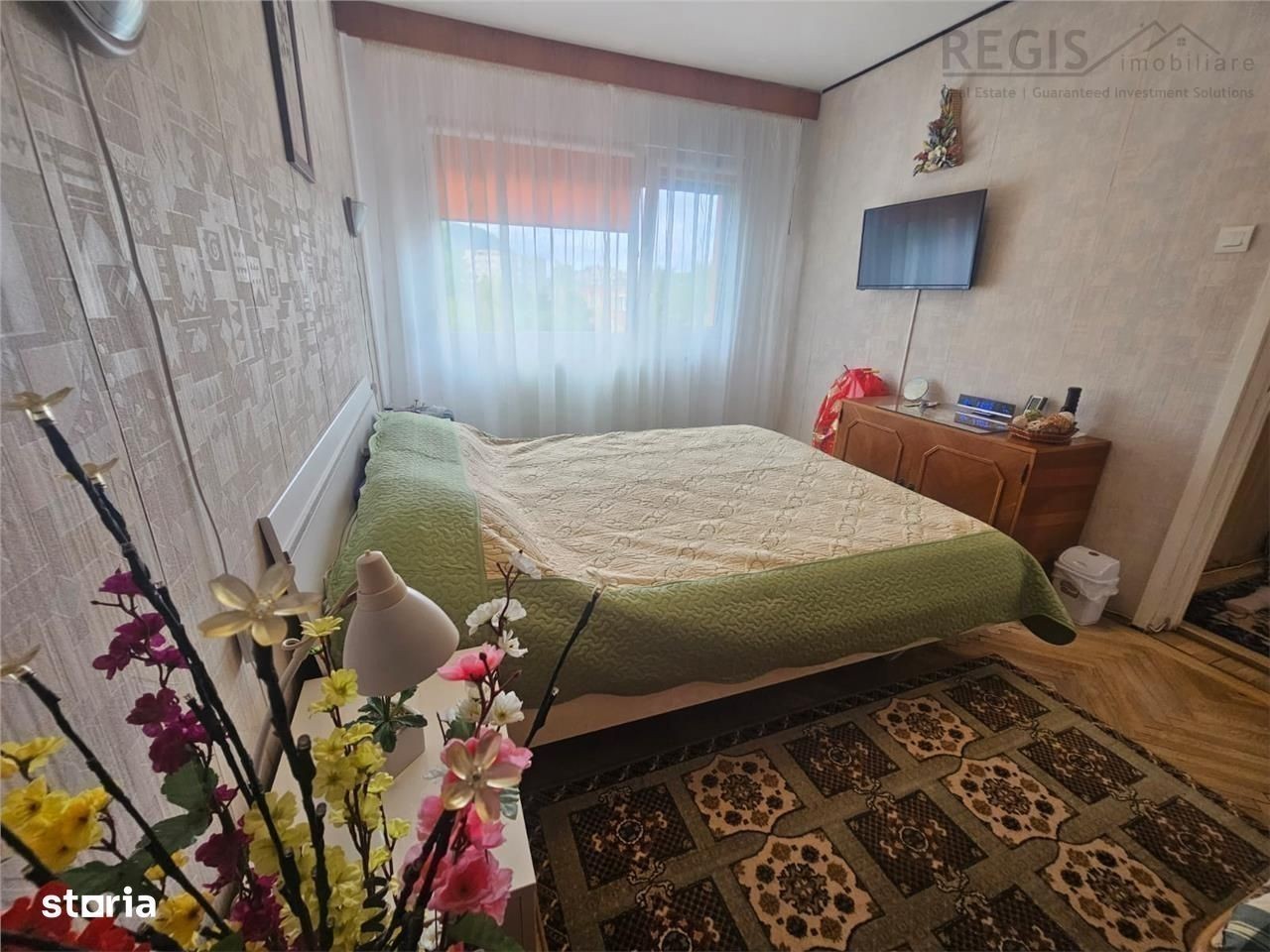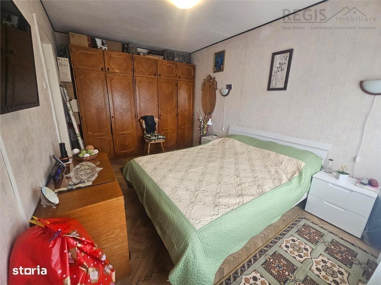 ID intern: 5260 REGIS Imobiliare va propune spre vanzare un apartament cu 2 camere, situat la etajul 4 din 4, cu o suprafata utila de 48 mp. Proprietatea dispune de balcon inchis in termopan, uscator de rufe pe acelasi palier (vecin cu apartamentul), si fara camere amplasate pe colt. In camere este montat parchet mare din stejar, oferind un plus de confort si eleganta. Imbunatatiri si dotari: Instalatie electrica noua, realizata cu fire din cupru Ferestre din termopan Bloc anvelopat pe exterior Acoperis in stare foarte buna, fara probleme sau infiltratii Centrala termica schimbata in urma cu 2 ani Masina de spalat noua Rulou exterior la dormitor Se vinde mobilat Scara blocului are lumina naturala, iar vecinii sunt linistiti. Zona este aerisita si verde, cu acces facil la supermarketuri, scoli, gradinite, statii de autobuz si parcuri - ideala pentru o viata linistita si practica. Comision agentie: 2% + TVA