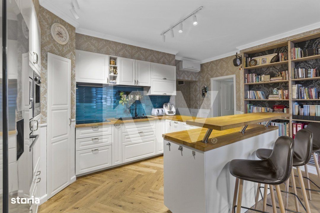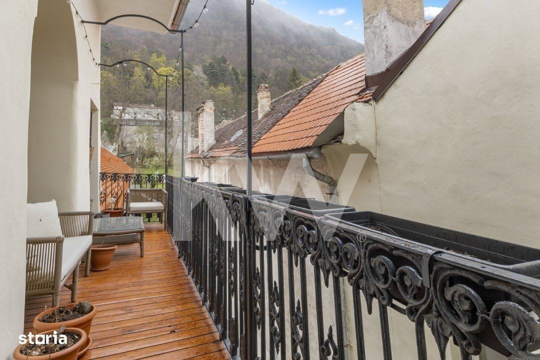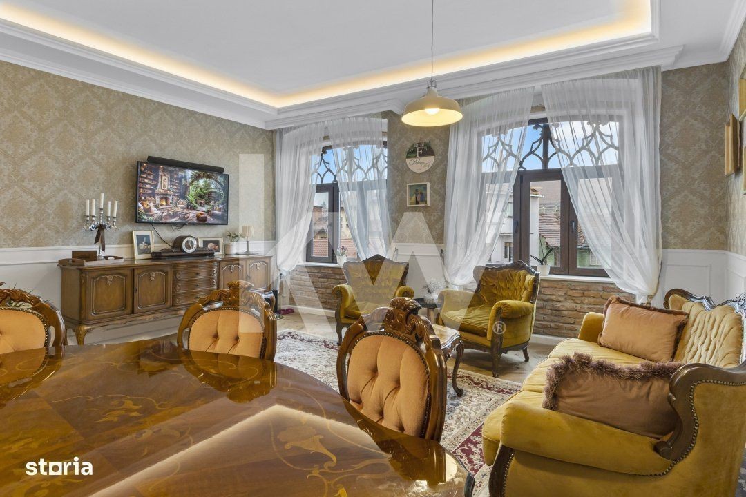 Descoperă farmecul autentic al centrului vechi al Brașovului, unde istoria se împletește cu eleganța și atmosfera boemă, oferindu-ți oportunitatea perfectă de a crea experiențe memorabile în fiecare zi. Acest superb apartament cu 4 camere și o suprafață utilă de 130 mp oferă un mix rafinat între eleganța clasică și confortul contemporan. Situat în inima centrului istoric al Brașovului, într-o clădire cu un caracter unic, în stil baroc și cu fațadă complet renovată, apartamentul impresionează prin designul său sofisticat și atenția la detalii. Livingul open-space este generos, luminos, cu o priveliște spectaculoasă către Piața Apollonia Hirscher și clădirile emblematice din centrul orașului. Bucătăria modernă, complet echipată cu electrocasnice de ultimă generație și o insulă cu blat din lemn masiv, se integrează perfect în zona de dining și living - spațiul ideal pentru seri relaxante sau întâlniri memorabile cu cei dragi. Locuința include trei dormitoare, fiecare cu personalitate distinctă - de la rafinat și elegant, la vibrant și creativ, perfect pentru copii sau adolescenți. Domitorul matrimonial beneficiază de dressing și baie proprie. Spațiul tehnic/spălătoria poate fi transformat cu ușurință într-un al patrulea dormitor, în funcție de nevoi. Două băi moderne, o cămară practică și un balcon generos completează această locuință cu adevărat specială. Terasă privată oferă o vedere panoramică uimitoare spre Vârful Tâmpa si zidurile vechii Cetăți iar curtea comună, spațioasă și amenajată cu gust, adaugă un plus de confort și liniște. Puncte forte: *Locație premium, ultracentrală, în zona istorică *Clădire cu farmec arhitectural, stil baroc, fațadă renovată complet *Finisaje de lux, amenajare de designer *Mobilier și electrocasnice incluse *Parchet din lemn masiv, încălzire în pardoseală, aer condiționat *Terasă spațioasă cu vedere spre Tâmpa *Curte comună amenajată Fie că ești în căutarea unei investiții sigure într-o zonă cu valoare istorică ridicată, fie că îți dorești să locuiești cu stil în inima Brașovului vechi, acest apartament este alegerea ideală. Contactează-ne acum pentru vizionare și mai multe detalii - povestea ta în Brașovul Vechi începe aici!