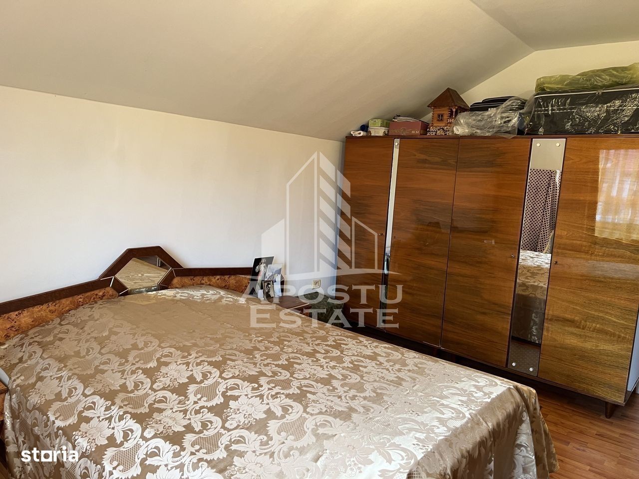 Apostu Estate vă propune spre vânzare o casă spațioasă și bine compartimentată, situată într-o zonă liniștită din Sânandrei, ideală pentru familii care își doresc liniște, confort și acces rapid către oraș. Proprietatea este construită în 2009 și se remarcă printr-o curte generoasă și spații bine gândite, atât la interior cât și la exterior. Detalii proprietate: • Teren: 856 mp • Suprafață utilă: 172 mp (86 mp la parter + 86 mp la etaj) • Construcție solidă • Fosa septică funcțională • Se vinde parțial mobilată • Preț final: 255.000 € Compartimentare: Parter: • Living generos cu bucătărie open space si masina de spalat vase • Cameră tehnică • Dormitor/Birou ideal pentru lucrul de acasă • Baie cu cadă • Terasă spațioasă - 40 mp • Anexă de depozitare - 10 mp Etaj: • 3 dormitoare • Baie completă cu duș • Unul dintre dormitoare are: • Baie nefinisată cu posibilitate de amenajare si ieșire pe balcon • Balcon suplimentar pe hol Alte beneficii: • Pod înalt - perfect pentru depozitare • Curte mare, potrivită pentru grădină, loc de joacă sau relaxare Va asteptam cu drag la vizionare! ID Intern: CP2558330!