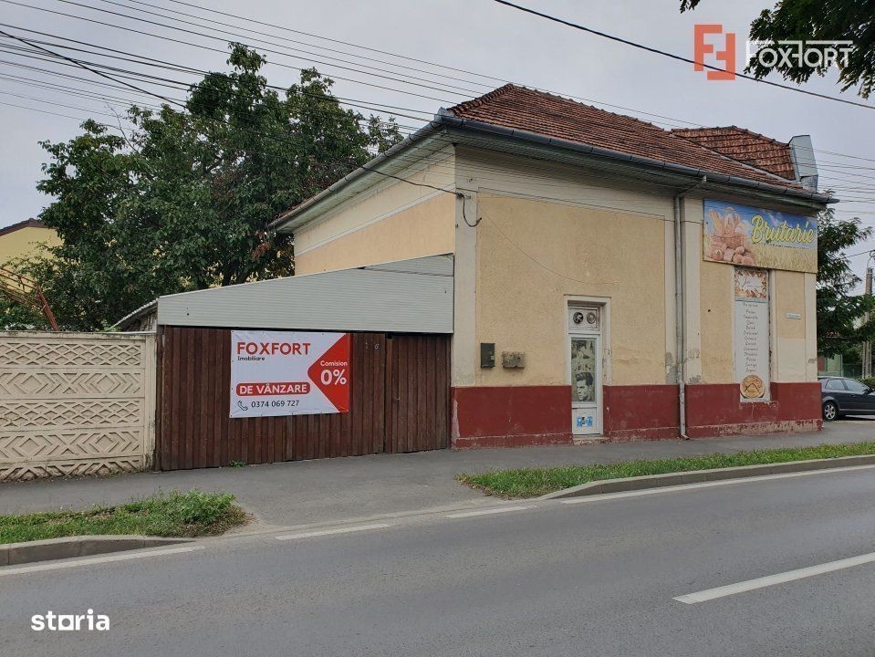 Spatiu comercial + casa individuala cu 3 camere de vanzare in localitatea Timisoara, zona Freidorf. FOXFORT propune spre vanzare in exclusivitate cladire individuala, cu un regim de inaltime Parter + Pod inalt, situata in Timisoara, zona Freidorf fiind compusa din casa, avand un numar de 3 camere, cu o suprafata utila de 92 mp si teren 709 mp. Anul constructiei este 1915, structura caramida, material zidarie caramida cu doua fronturi stradale de 27 ml fiecare. Acoperis nou si pod inalt ce permite mansardare. Imobilul dispune de urmatoarele utilitati: curent electric, apa, canalizare, gaz, catv, fibra optica. Casa dispune de centrala proprie, soba teracota, calorifere si 4 locuri de parcare. Spatiu comercial independent la parter, cu intrare din strada, cu suprafata de 115 mp, perfect pentru brutarie, magazin, atelier, birouri sau activitati de productie/servicii. Este complet dotat: hol, grup sanitar, vestiar si beci. Centrale proprii si contoare separate - pentru control total al consumului. Compartimentarea casei este dispusa dupa cum urmeaza: - hol, living, baie, bucatarie, 2 dormitoare, terasa; - Pod mansardabil. Compartimentarea spatiul este dispusa astfel: o camera cu intrare din strada, o camera pentru productie, hol, grup sanitar, beci ( spatiu depozitare) Curtea dispune de: - Garaj pentru 2 masini, cu groapa de inspectie; - Doua anexe: una amenajata ca garsoniera, baie + bucatarie, cealalta destinata depozitarii; Finisajele interioare sunt clasice: - Usa intrare: pvc; - Usi interioare: lemn; - Tamplarie ferestre: lemn; - Podele: gresie, dusumea. Pretul este de 379.990€ - COMISION 0%. Se accepta ca si modalitate de plata surse proprii sau credit bancar. ID intern: V8397