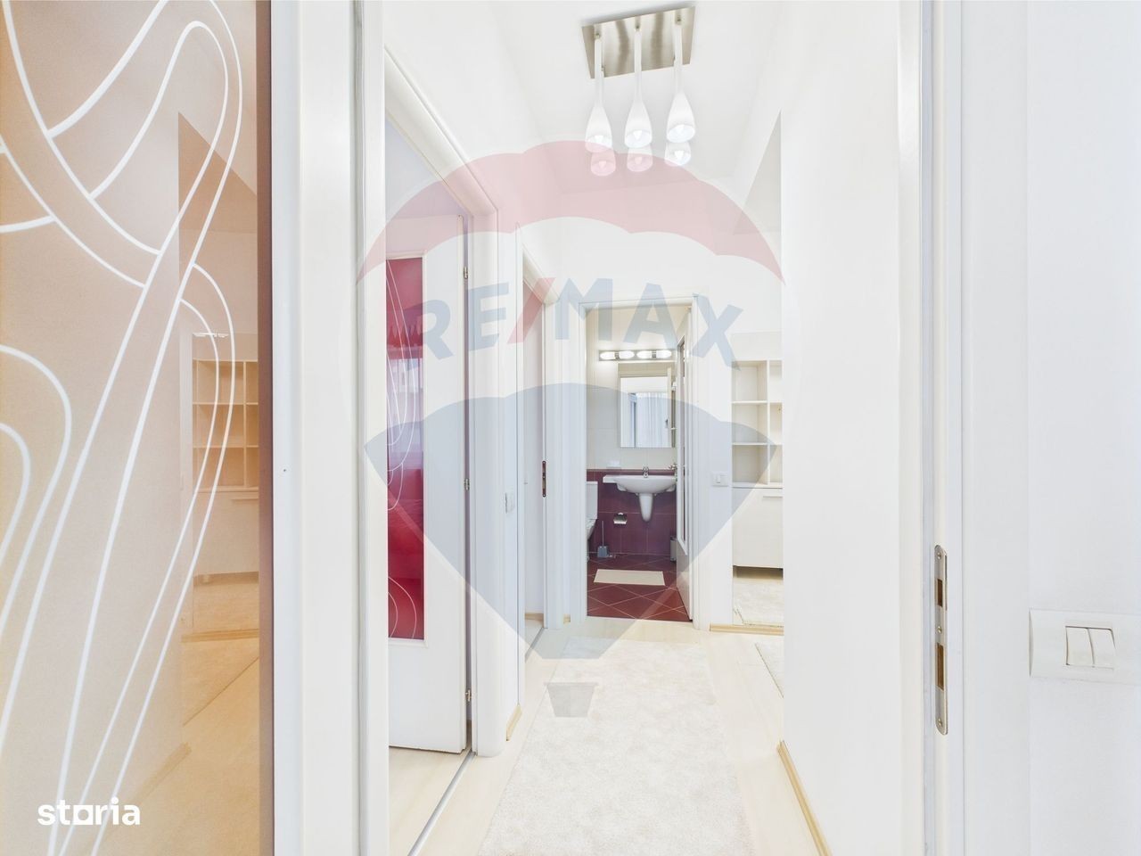 Va propun spre inchiriere un apartament cu 4 camere situat in complexul North Area Lake View pe str. Zagazului, zona Aviatiei, la 3 minute de Parcul Herastrau. Proprietatea se afla la etajul 6 din 9 si are o suprafata de 156 mp, cu 4 camere, 3 bai si 2 balcoane. In plus beneficiaza de 2 locuri de parcare in subteran si 2 boxe de depozitare (pret separat in functie de nevoia chiriasilor). Apartamentul este utilat si mobilat complet, alaturi de toate electrocasnicele necesare. Pets friendly! Compartimentare: Proprietatea este decomandata, dispusa pe 4 camere, dupa cum urmeaza: Hol de acces catre zona de living care are o suprafata generoasa, Bucatarie open space 3 dormitoare 3 bai 2 terase de cate 5 mp Apartamentul se inchiriaza cum este prezentat in poze, mobilat si utilat complet. Suprafata generoasa este extrem de versatila astfel ca proprietatea poate fi potrivita ca si rezidenta pentru un cuplu sau o familie (cu zone bine delimitate), dar si pentru o zona open space pentru activitate de birou. Blocul dispune de paza permanenta, are loc de joaca pentru copii, park privat cu lac si cascada cu pesti si broaste testoase. La parter este supermarket, sala de fitness si gastrobar. Toate acestea oferind un loc ideal de relaxare fix la tine acasa. In zona existe nenumarate puncte de interes atat pentru busines cat si pentru relaxare: Mall Promenada, sediile mai multor companii multinationale si a multor Ambasade, restaurante, cafenele, locuri de joaca, scoli si gradinite private. De asemenea unitati medicale (clinici, spitale, farmacii) de renume. Legatura cu orasul este facila si cu ajutorul mijloacelor de transport in comun (autobuze, Metrou). - 600 m pana la Metrou Aurel Vlaicu - 800 m pana la Mall Promenada - 150 m pana la Lacul Floreasca - 700 m pana la Lacul Herastrau - 600 m pana la Ambasada Chinei Va asteptam sa vedem impreuna aceasta proprietate din zona de nord a orasului.