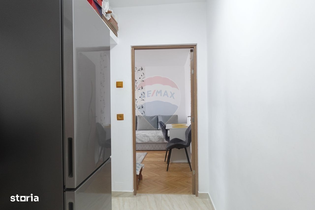 Apartament complet renovat și mobilat - gata de mutat! Vă propunem spre vânzare un apartament modern, luminos și eficient compartimentat, situat la etajul 4/4 al unui bloc bine întreținut, într-o zonă excelentă: aproape de școală, grădiniță, parc și supermarket. Instalații complet refăcute Instalație electrică nouă Instalație sanitară nouă Centrală termică Immergas și calorifere moderne Compartimentare: 2 camere spațioase (dormitor și living) Bucătărie complet mobilată și utilată, cu electrocasnice incorporate Baie elegantă, cu finisaje de calitate, mașină de spălat, cabină de duș și oglindă smart Hol cu spații de depozitare bine gândite Alte avantaje: Se vinde mobilat și utilat complet - exact ca în poze Mobilier modern, în stare impecabilă Finisaje recente, de calitate superioară Locație ideală: lângă unități de învățământ, zone verzi și magazine Acces facil către mijloace de transport Pentru stabilirea unei vizionări va rog sa ma contactati la telefon :