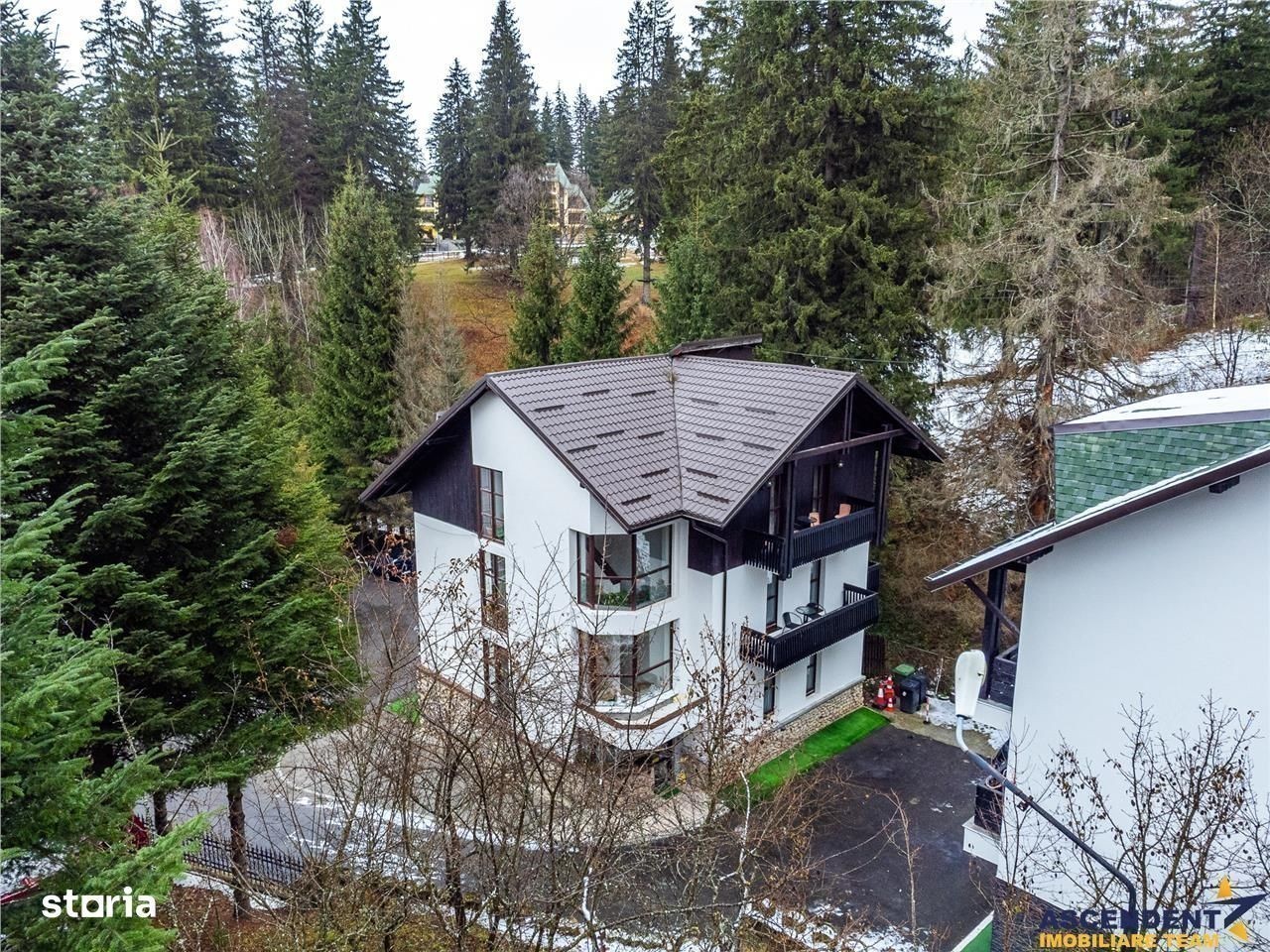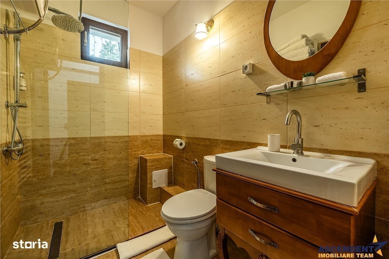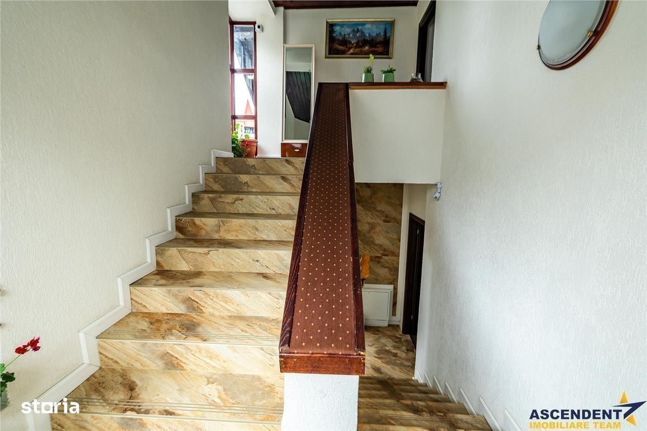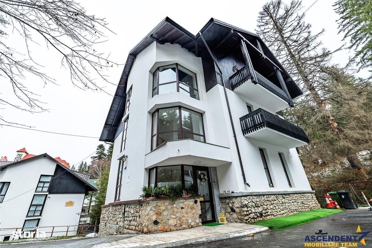 Comision cumparator: 0% din valoarea de tranzactionare. ASCENDENT IMOBILIARE propune spre vanzare in REPREZENTARE IMOBILIARA, o proprietate deosebita, in cea mai mare si moderna statiune de vacanta din tara, fiind o atractie de renume international, Poiana Brasov. Pentru confortul dumneavoastra va invitam sa faceti o prima vizionare, chiar acum, prin accesarea filmelor de prezentare, pe care vi le-am pregatit, cu drag: Film Prezentare 1: s: watch?v=pn0DXUAjjY Film 2: s: watch?v=Zh9So2l0Qdw Din cele mai vechi timpuri, Poiana a atras atat pasionati de drumetii montane cat si împatimiti ai sporturilor de iarna. Situata la o altitudine de 1020 m, statiunea de schi cu acelasi nume, va ofera trasee pe Muntele Postavaru, un patinoar, un centru de recreere acoperit si un complex sportiv cu partii pentru tubing si sanius. Vara, excursionistii si biciclistii exploreazs cararile verzi de munte, iar hergheliile ofera tururi calare. Hotelurile de lux, pensiunile, magazinele cu produse de schi si restaurantele traditionale romanesti anima zona. Va invit in aceasta resedinta situata intr o zona linistita a Statiunii, imprejmuita de brazi inalti, cocheta si primitoare, oferind locul ideal pentru primirea oaspetilor atat vara, cat si iarna. Excelenta pozitionare pe segmentul de business, cladirea este structurata pe S+P+E+M, avand urmatoarea configuratie: - in zona de parter (considerata demisol) avem un dormitor mare + baie, camera tehnica cu 2 centrale termice care deservesc cladirea, bucatarie personal - la etajul 1 si 2 sunt 10 camere structurate ca si apartamente sau suita de apartament si living pentru familii cu copii, fiecare deservite de bai cu cabina de dus - la mansarda avem 2 camere ale personalului si o baie Terasa de vara este foarte frumoasa, intotdeauna oaspetii sunt primiti cu o bautura calda in sezonul rece si intampinati cu caldura de catre proprietari. Foarte cocheta este sala de mic dejun, in suprafata utila de 38 mp, cu o capacitate de 25 persoane, designul acestei incaperi fiind in armonie cu linia proprietatii, cu tonuri calde de culori si finisaje de calitate. Aceeasi linie eleganta o regasim in pensiune, linia mobilierului fiind una moderna, comandate special, astfel incat fiecare camera are o nota aparte. Proprietatea beneficiază de sistem de supraveghere video, sistem de alarma, aer conditionat, clădirea fiind reabilitata termic, cu structura solida din caramida. Oferta vine in intampinarea dumneavoastra cu accesul pentru10 locuri de parcare. Recomandam si pe segmentul investitie, se ofera flexibilitate pentru schimb cu teren (+diferenta) doar in Poiana Brasov! Va invit sa descoperim impreuna povestea acestei incantatoare pensiuni, recomandata atat pe segmentul investitional cat si rezidential. Invitam colegii la colaborare! O zi cu soare in suflet sa aveti!: ) Consilieri specializati pe oferta: doamna Gilda Georgescu Telefon WhatsApp: